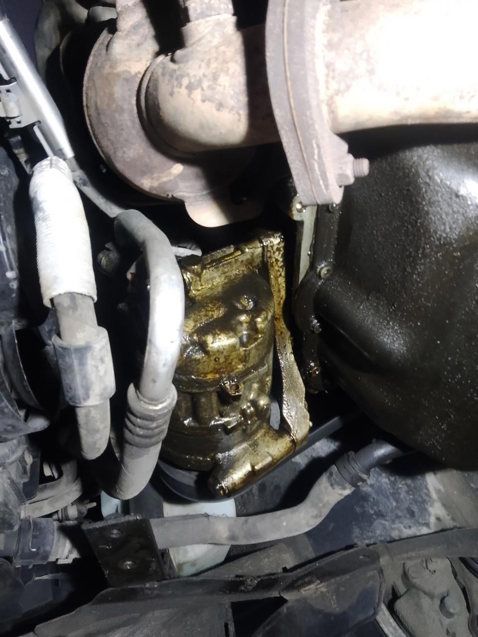 А вот и искомые болты, видим что кронштейн с обратной стороны мокрый, что подтверждает течь именно оттуда.