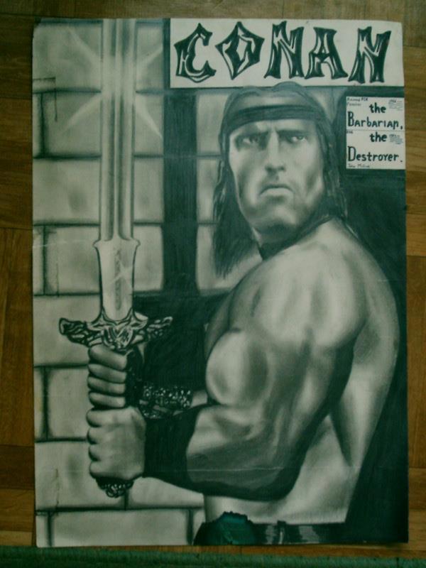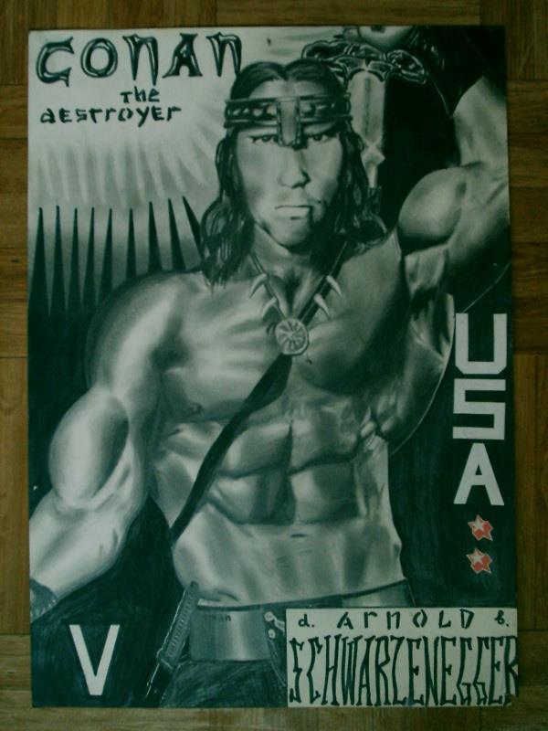 В основном все рисунки я распродал, а себе оставил только Шварценеггера, причем в основном в роли Конана.