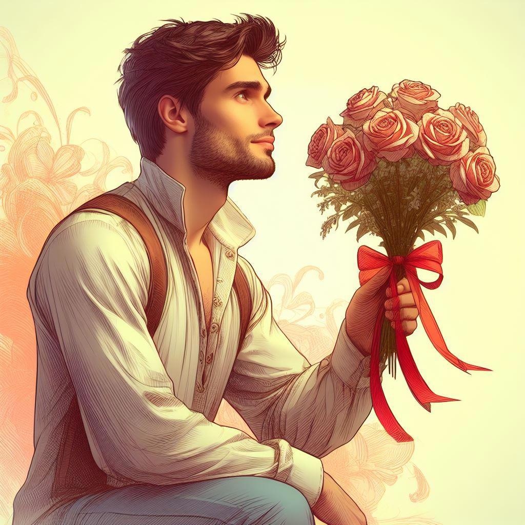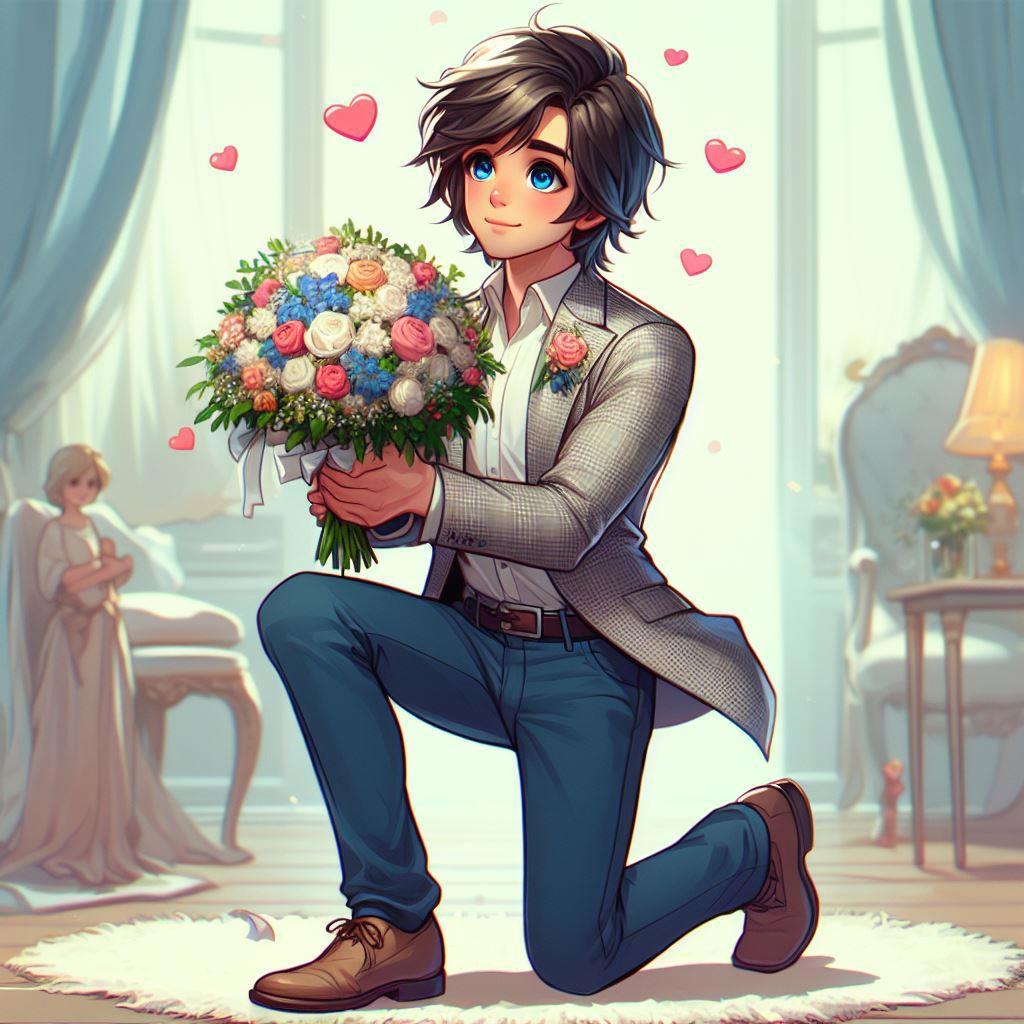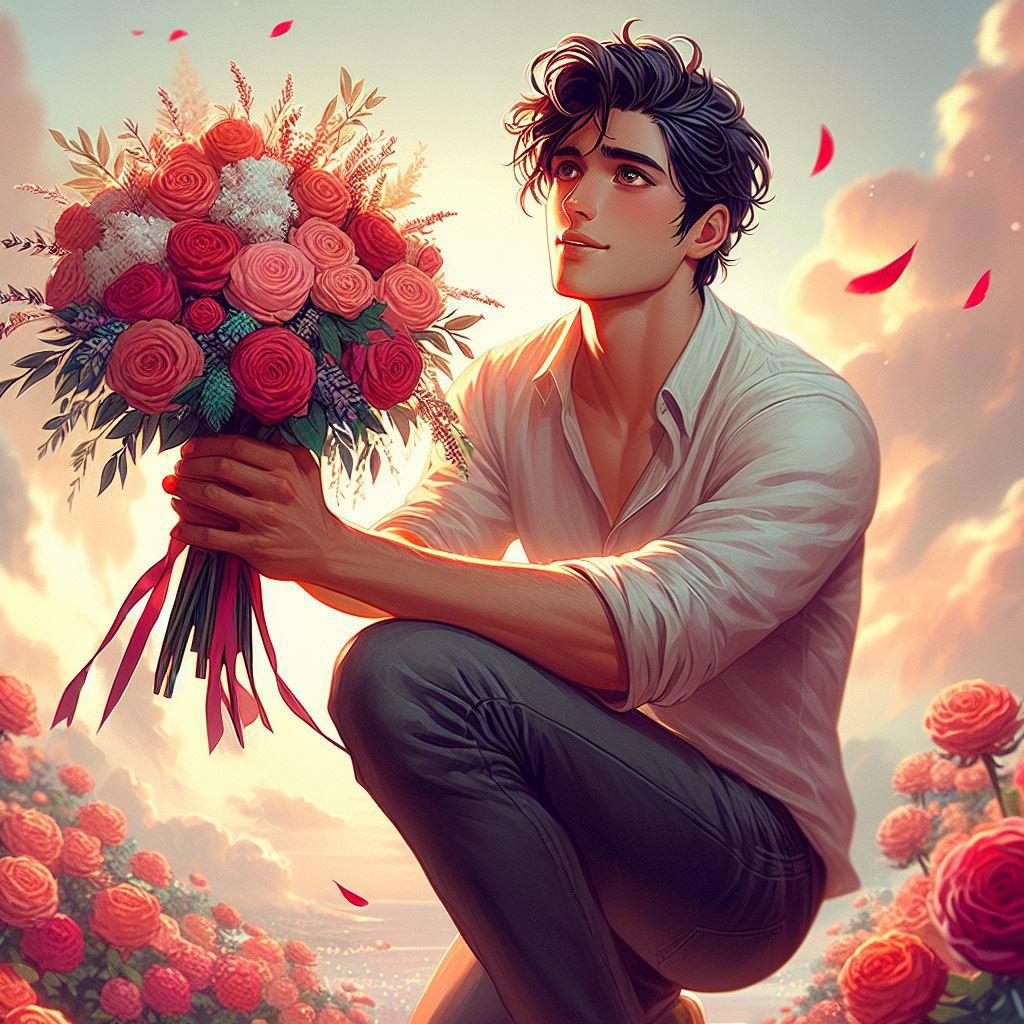 Сегодня у моей сестры день рождения и к этому празднику я делала поздравительные открытки. И набралось много симпатичных парней с букетиком. Хочу поделиться этими артами с вами.