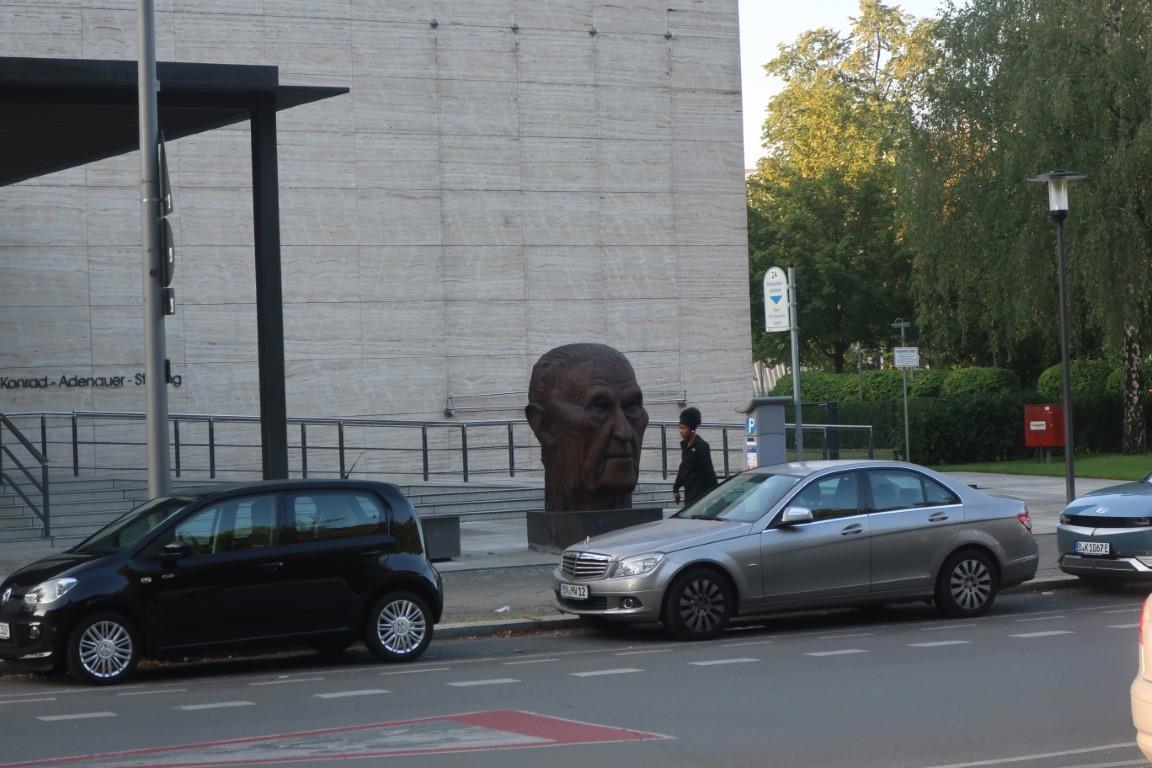 Кто это такой, и что он делает здесь не посмотрел, а сейчас не могу найти. Пусть будет "безымянным героем”, хотя на стене написано - Конрад Аденауэр, если это он, ну тогда - первый федеральный канцлер Федеративной Республики Германия с 15 сентября 1949 по 16 октября 1963.
