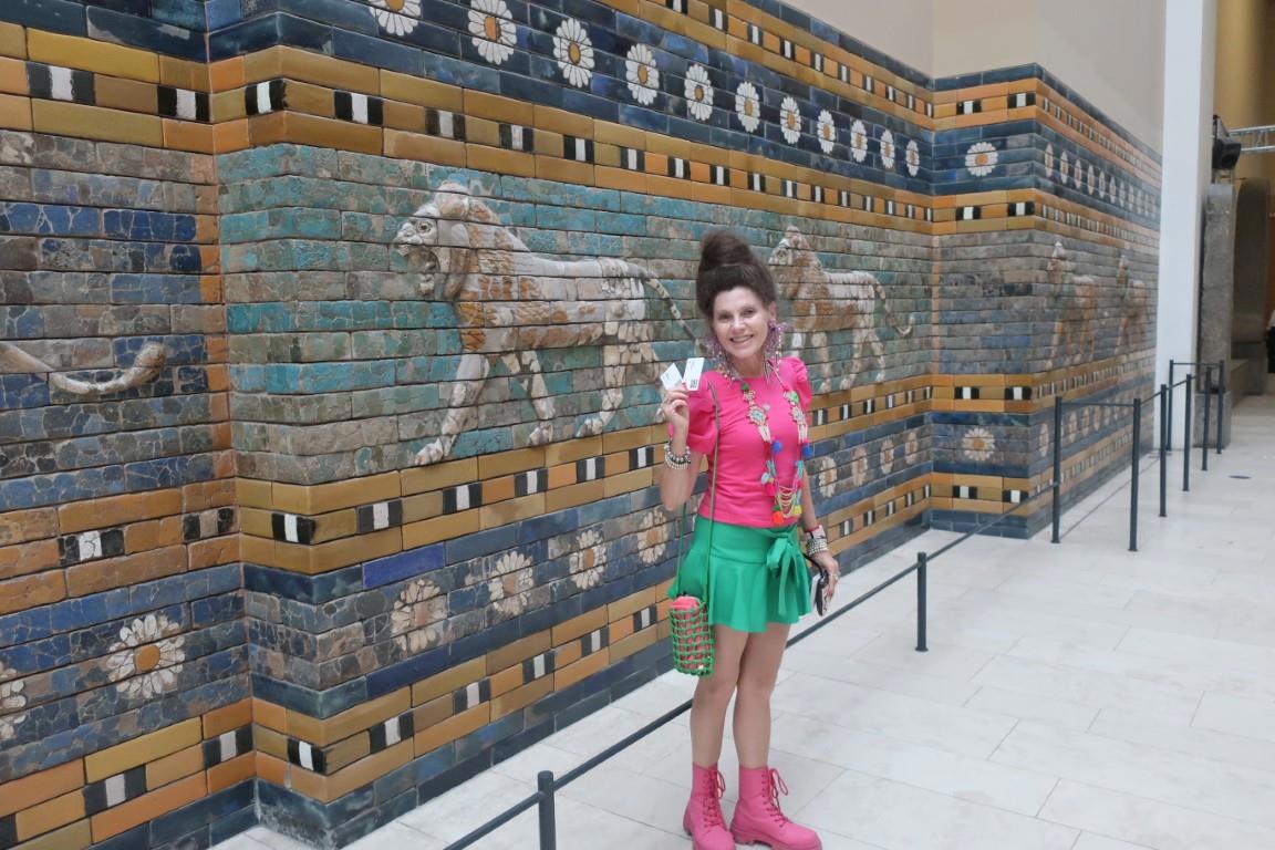 Восторг и умиление - они собирали 30 лет из кусочков все эти экспонаты! Реконструкция парадной улицы Вавилона. В руках у жены те самые годовые билеты членства в музее. Имея их в руках, сейчас она терроризирует меня, собираясь поехать в Берлин на неделю смотреть этот музей ещё детальнее, а заодно и остальные. Меня этим не напугаешь, но сейчас не лучшее время ехать в Берлин - демонстрации, наводнения, снегопады и так далее, так, что ей придётся подождать.