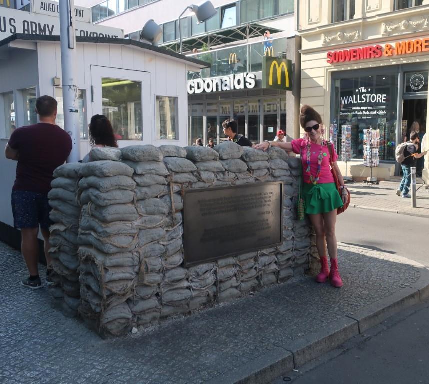Check point Charly – чекпойнт Чарли - проход из ГДР в Западный Берлин меня поразил 34 года тому назад. Я ехал из Ганновера за рулём Мерседеса с немецким номером, так как хозяин выпил и вести машину не хотел, а я три дня не ел и не пил после того, как попробовал "бифштекс по-татарски" - сырое молотое конское посоленное и поперчённое мясо. Когда мы подъезжали к чекпойнту, там стояла очередь машин с ГДРовскими номерами и номерами разных стран. Я крутанул руль, чтобы встать в конец очереди, однако хозяин машины сказал: " Давай, давай, езжай прямо. Сейчас мы здесь хозяева..." - толстые бетонные стены, надолбы и бетонные блоки, между которыми пришлось вилять. Хотел показать жене, а нету больше такого...