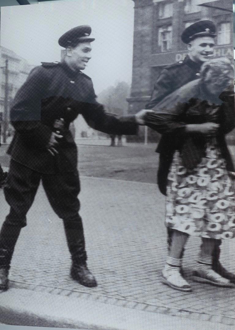 Советские солдаты пристают к немке. Берлин.