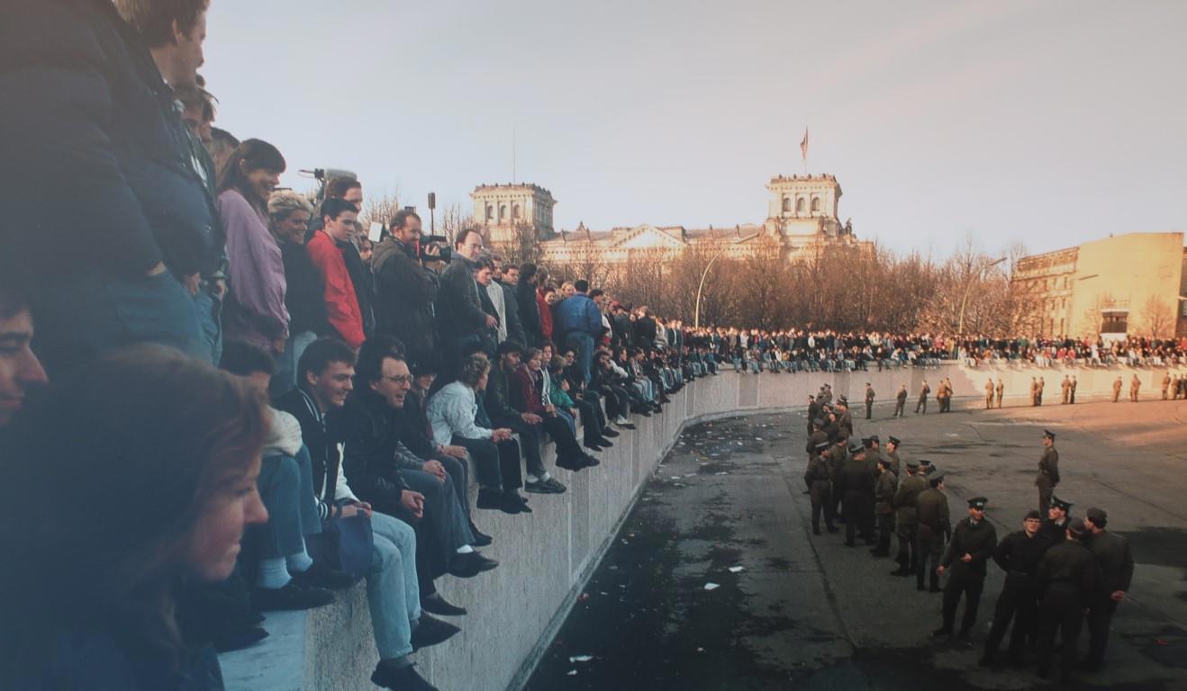 Агония ГДР - перед объединением: западные немцы сидят на стене и ухмыляются, восточные по инерции ещё делают вид.