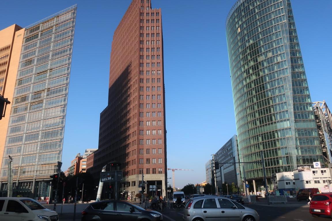 Некоторые домики на Потсдамской площади. Исторически площадь располагалась на въезде в Берлин из Потсдама (Потсдамские ворота). В 19 и 20 столетиях была местом военных тренировок и парадов. Была полностью разрушена во время WWII и не восстанавливалась, так как находилась в зоне разделения между Восточным и Западным Берлином, позже через неё прошла Берлинская стена. После объединения Германии площадь была реконструирована.