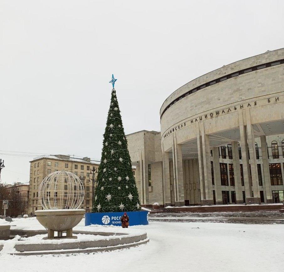 Елка у Национальной бибилотеки, угол Московского проспета и Бассейной.