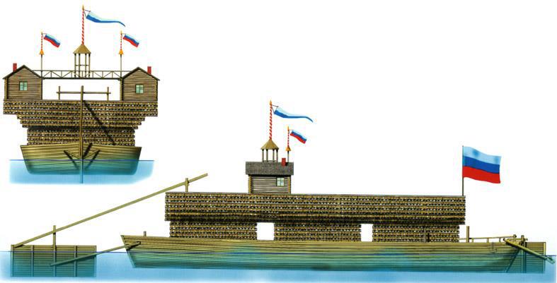 Интересно, что и палуба “беляны” тоже представляла собой не что иное, как груз, а настилалась либо из теса, либо из пиленых досок и бывала настолько велика, что походила на палубу современного авианосца. На ней ставили 2-4 ворота для подъема больших якорей и натяжения удерживающих лот канатов. А вот ближе к корме на “беляне” ради равновесия устанавливали по две небольшие избушки - "казенки", служившие местом обитания команды судна. Между крышами избушек перекидывался высокий поперечный мостик с резной будкой посредине, в которой находился лоцман.
