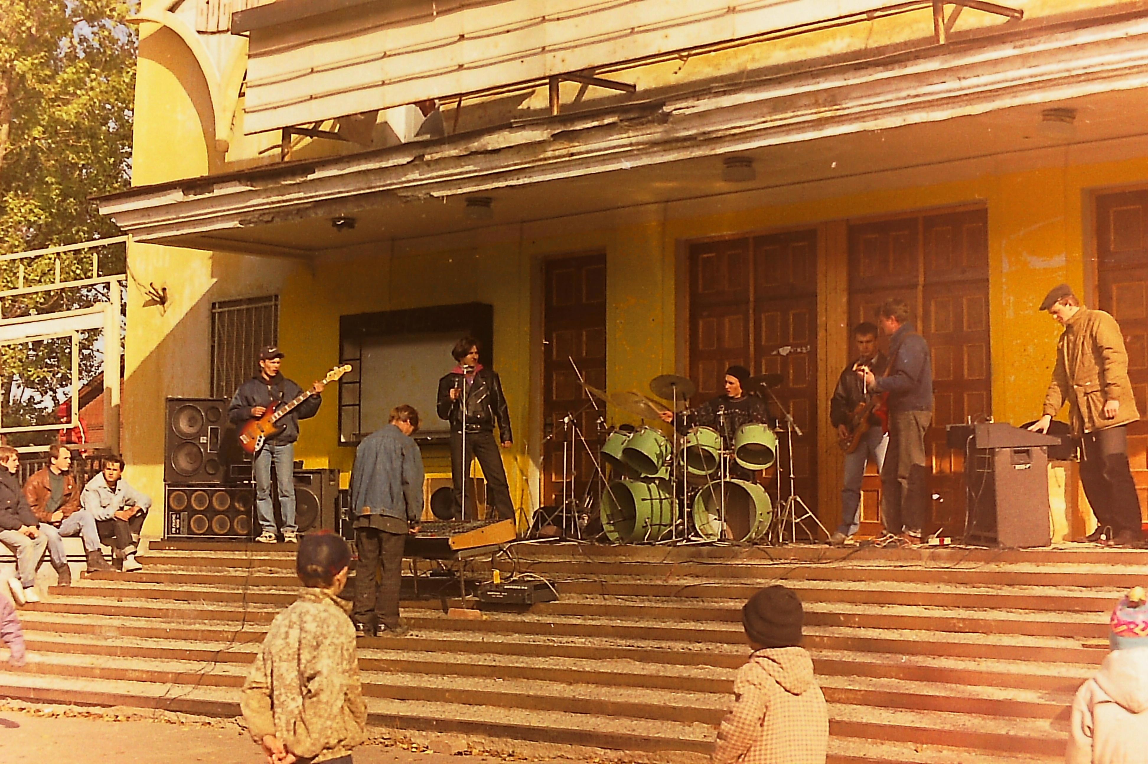 А это выступление местной рок-группы у кинотеатра "Восток" (да, того самого). И рок-группа - та, которую я уже выкладывал. На тот момент в ней один будущий депутат и два будущих работника "Газпрома" :