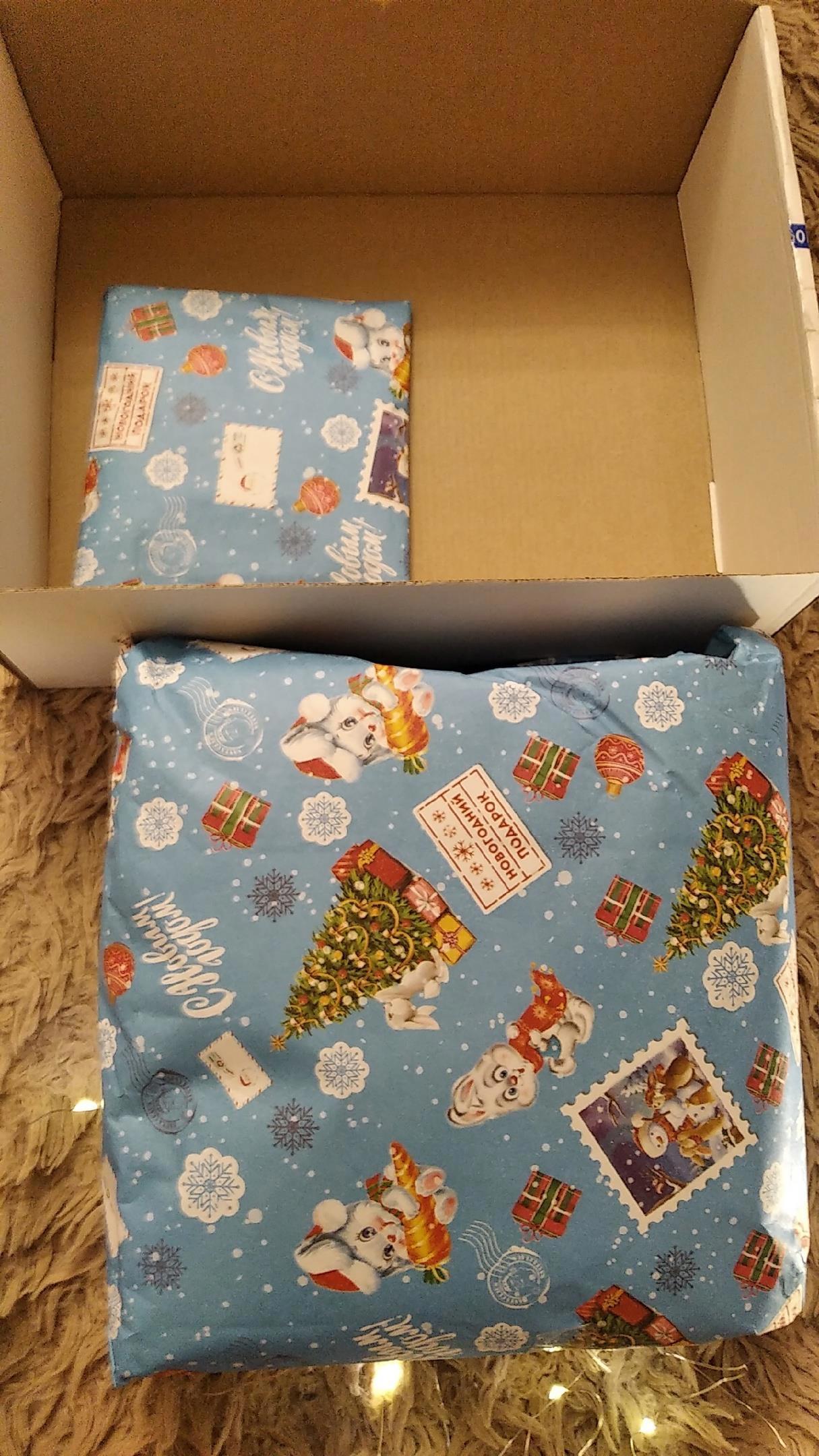 Под подарочной бумагой скрывалась небольшая коробочка, внутри которой в слоях пупырки спрятались два сюрприза.