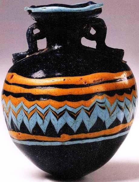 Автор: Масленков Игорь ВитальевичРассказав о скифском зверином стиле и полихромном стиле Римского времени нельзя не упомянуть о еще одном чудесном явлении античности. Речь идет о т.н. финикийском стекле. До сих пор идут споры о родине стекла. Одни говорят, что оно появилось на Ближнем Востоке. Другие отдают пальму первенства Древнему Египту. Но, видимо, именно в Финикии появилось разноцветное и узорчатое стекло, которое, собственно, мы и называем финикийским. Если хотите, так можно назвать определенный стиль древнего декоративного искусства, поскольку само по себе стекло не являлось чем-то из ряда вон выходящим. Из него массово изготовлялись как посуда, так и украшения. В чем же особенность финикийского стекла? Прежде всего оно глухое, т.е. непрозрачное. Обычно черного или синего цветов. Мастер вращал раскаленную заготовку и наносил на нее разноцветные стеклянные нити. В результате появлялась вот такая красота.