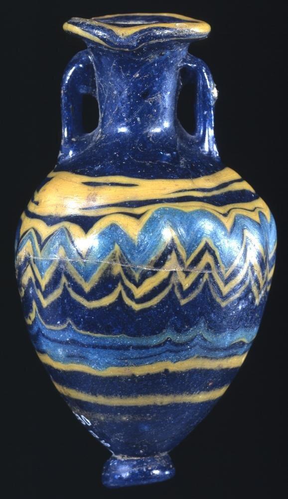 Мастера-стеклоделы подражали стандартным образцам античной посуды, прежде всего амфорискам (маленьким амфороподобным сосудам)
