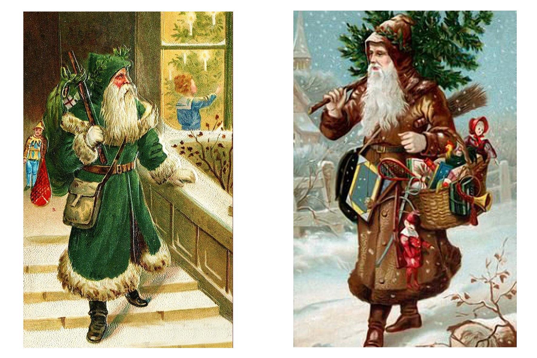 И в нём была фигурка человека с бородой, в серебристой шубе, в остроконечной шапке и с ёлочкой подмышкой. Помню он мне очень понравился, я спросила маму кто это. Мама ответила, что это Санта Клаус, немецкий брат нашего Деда Мороза. Прошло очень много лет, но всё это время Санта Клаус каждый Новый год помещается на верхние ветки ёлки, где располагаются самые старые и любимые игрушки. А особенно тепло я отношусь к его образу до 1931 года, до того, как его сделали ходячей рекламой напитка, при этом он на мой взгляд утратил часть своей таинственной чудесности. Мне ближе такой Санта.