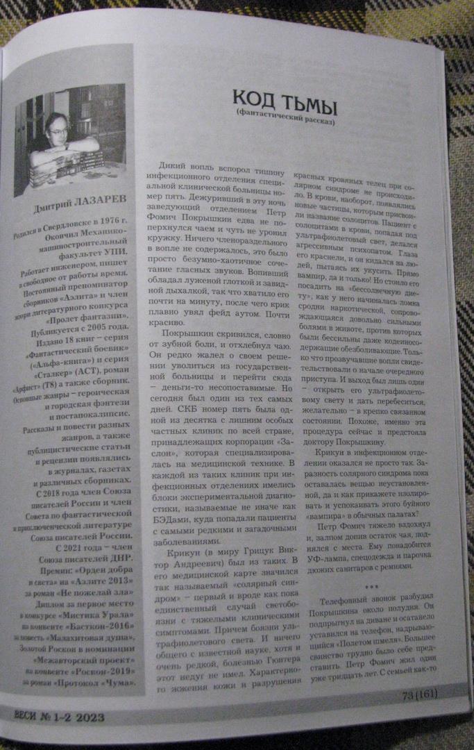 Что вышло. «Операция «Альфа» - последний роман цикла «Зона: перезагрузка» в серии Stalker, завершивший все мои истории об этом мире. Рассказ в жанре подростковой фантастики «Фотограф» в сборнике «Юный Донбасс». Рассказ в жанре хоррор «Кто не рискует» в журнале «Сундук» и научно-фантастическая повесть «Код тьмы» в журнале «Веси».