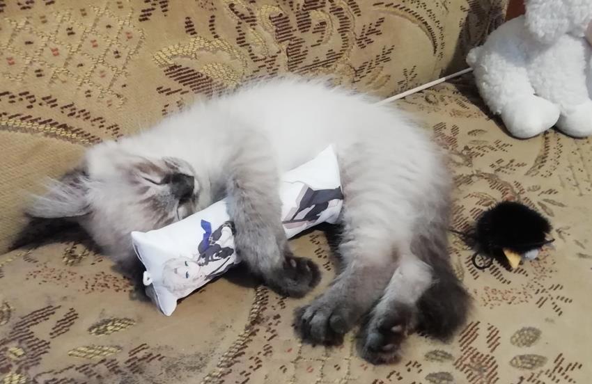 Но за полгода от беленького скромняги не осталось и следа, кот сменил окрас и характер. Теперь это донельзя самоуверенное существо цвета плохо размешанного латте, всегда добивающееся своего. Но мы его все равно любим :)