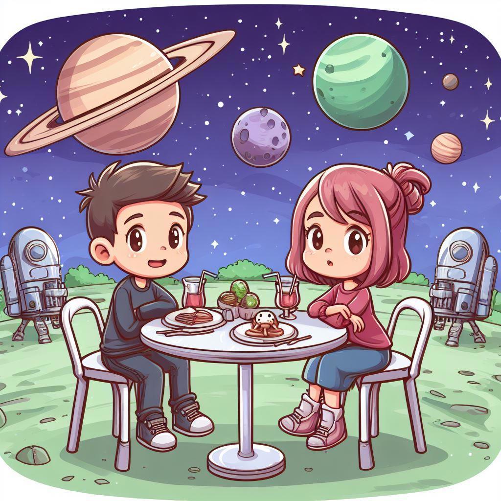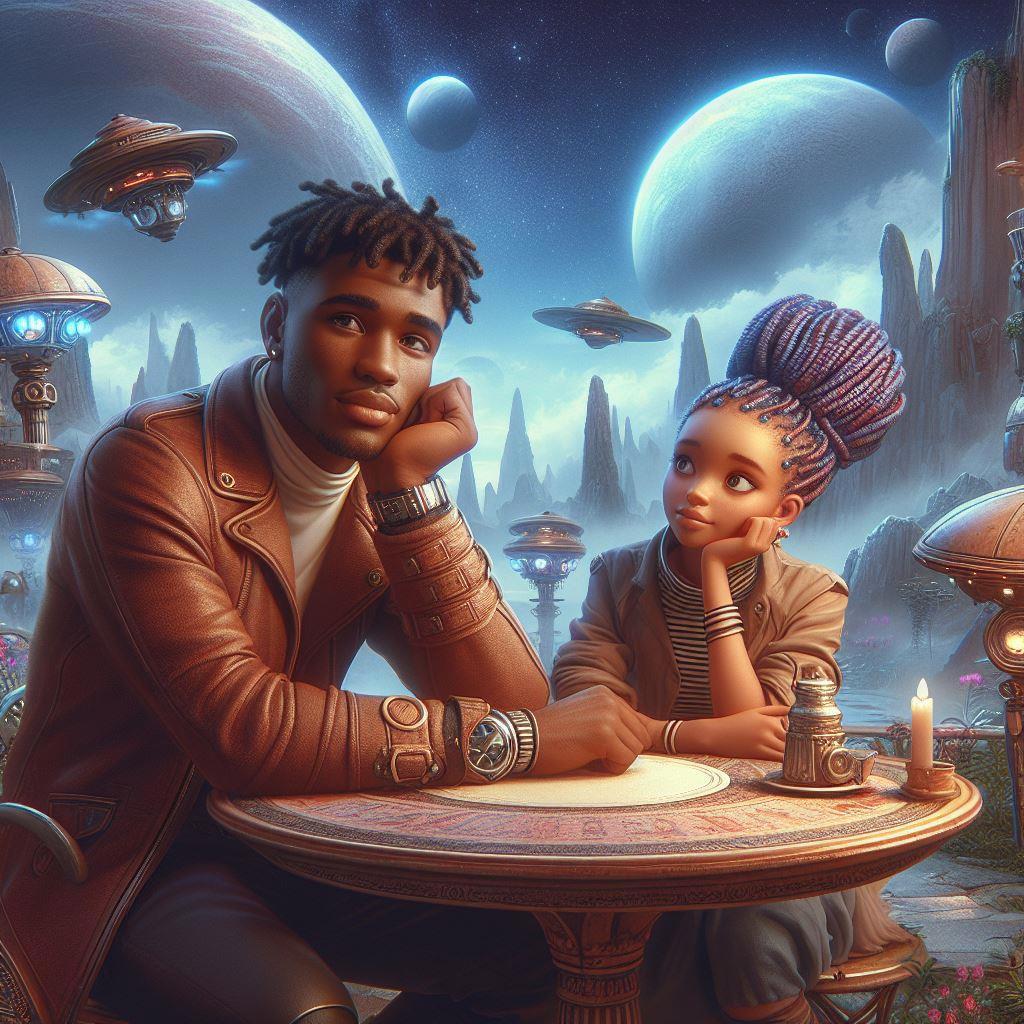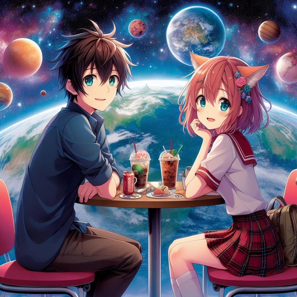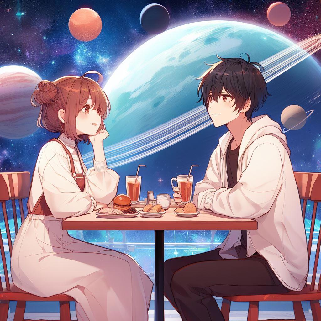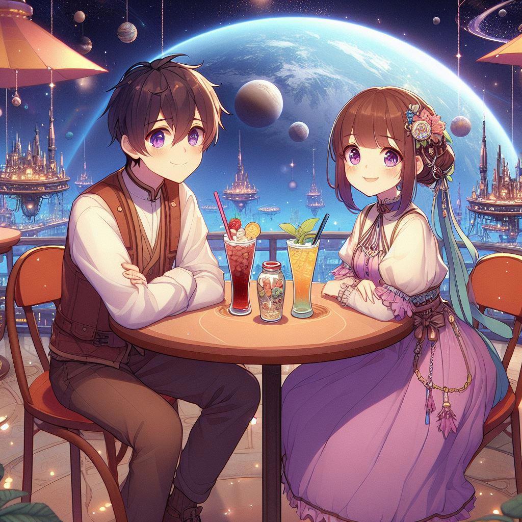 В продолжение ранее показанных свиданий, теперь наши милые пары посидят в миленьких, уютных и симпатичных инопланетных кафешках. Многие из них, вполне себе под открытым небом и наши пары любуются чужими планетами и звездами. Так давайте же и мы полюбуемся.