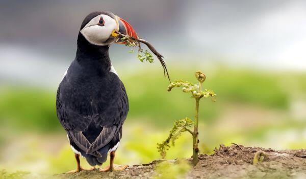 Материал для будущего гнезда. Травы и цветы, как и рыбку, очень удобно переносить в клюве.