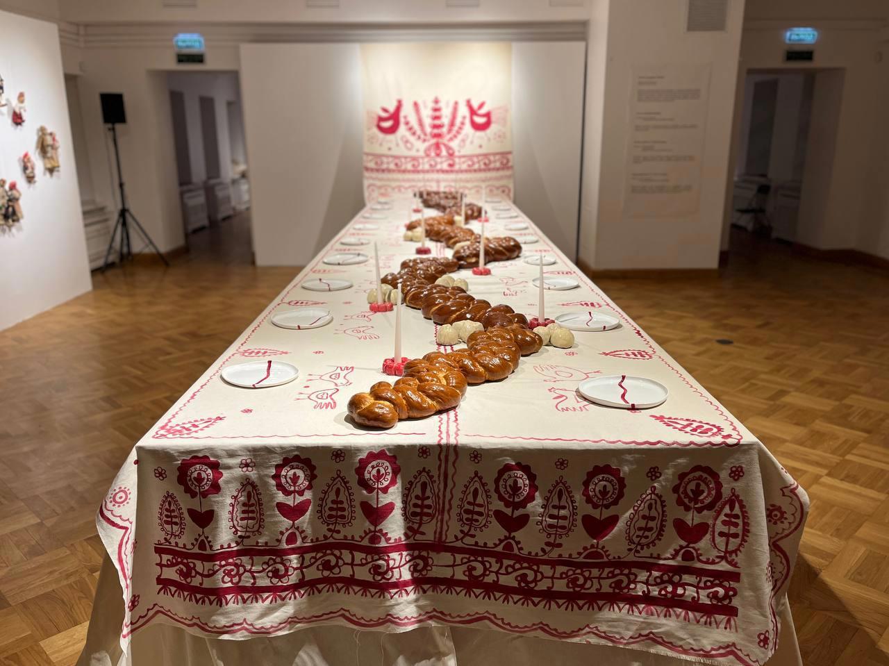 В одном из залов располагался длинный праздничный стол, украшенный в традициях Липецка. Скатерть наряжалась красной вышивкой, на ней располагались моченые яблоки - символ плодородия.