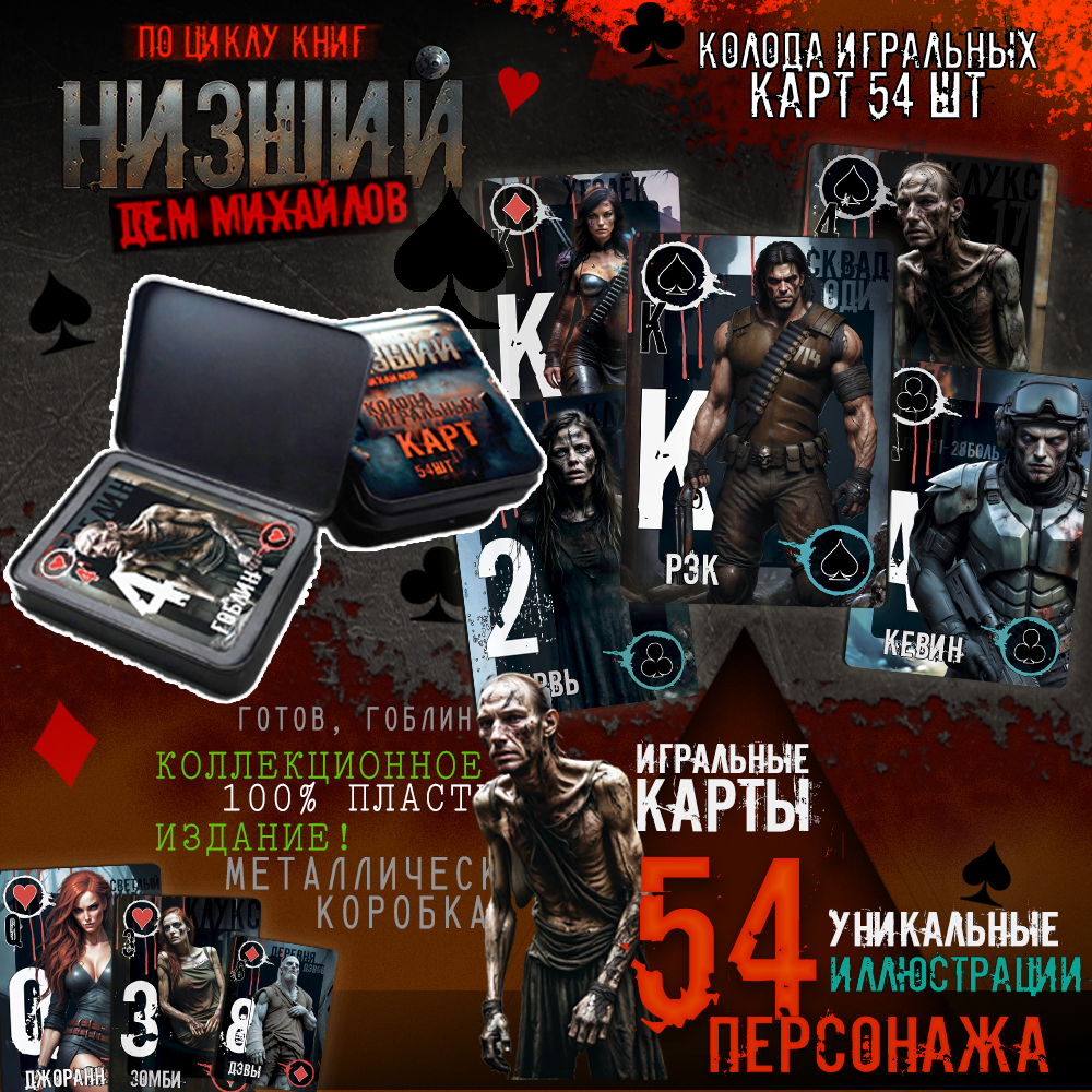 Немного подробностей: Полная покерная колода, стальной корпус коробки для хранения, сочнейшие цветные арты, много эмоций в каждом лице :)