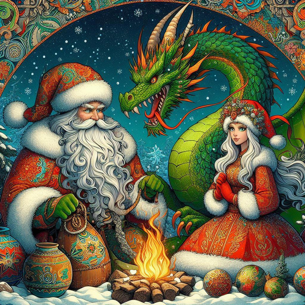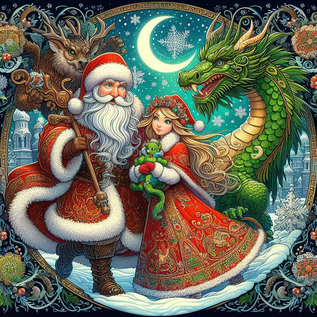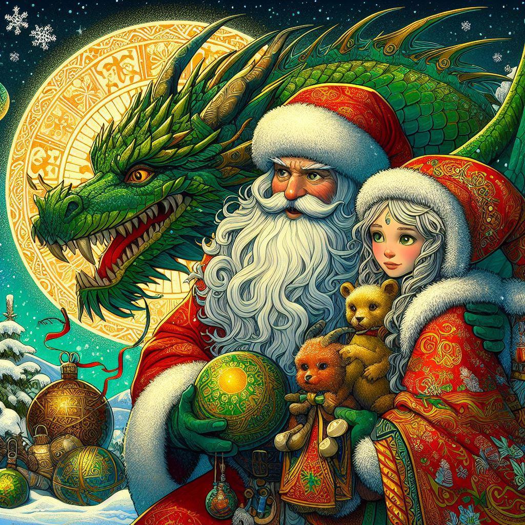 Автор: Обложки для книг и иллюстрации AI ВдохновениеВ предверие Нового года не удержалась и нарисовала новогодние открытки с символом наступающего года - Зеленым Драконом.