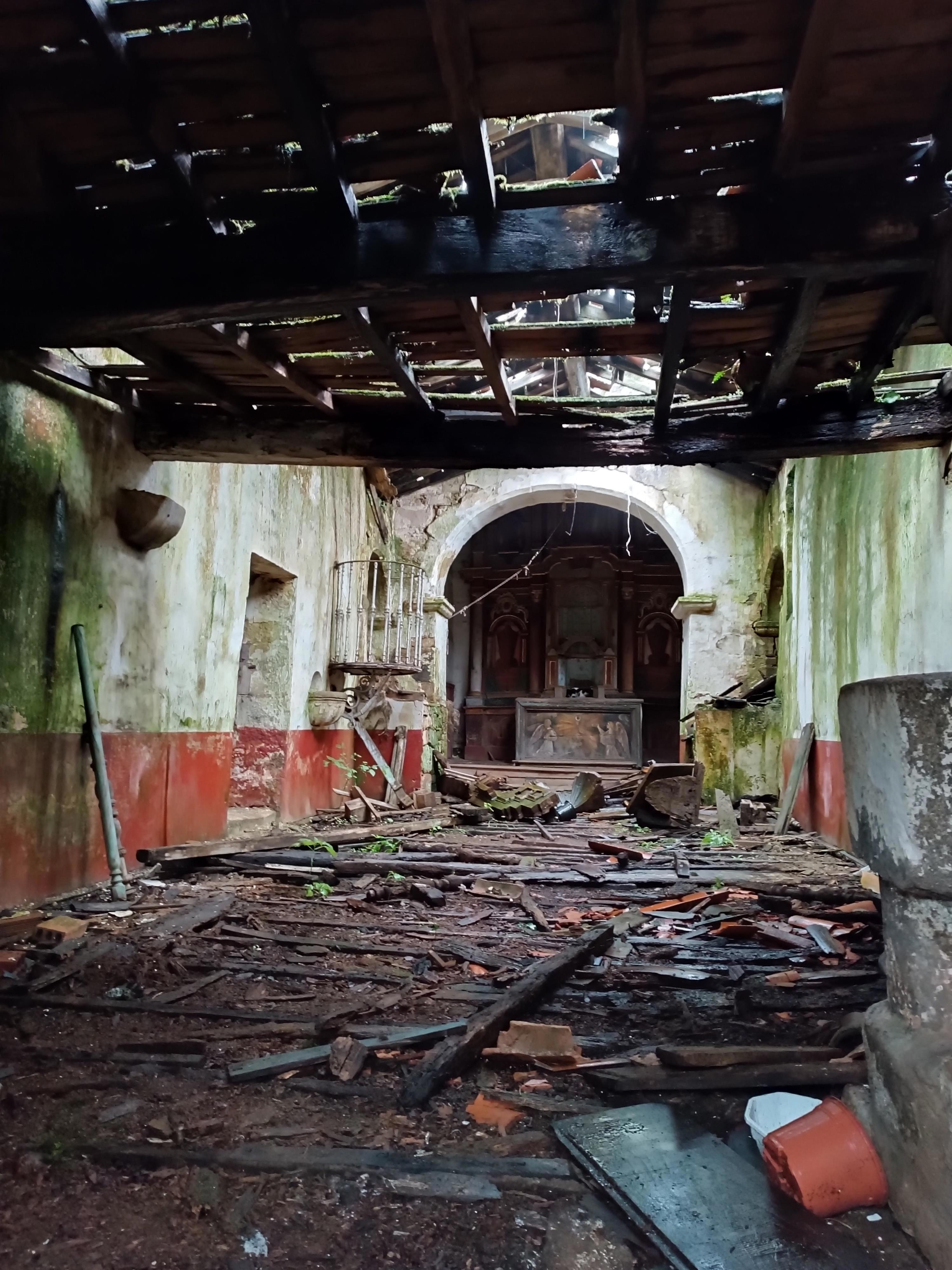 Зашли в часовенку: на алтаре коты сидят – от намоленного места греются; над порушенной кафедрой пастора фреска:"Баба с отрезанной головой на подносе".