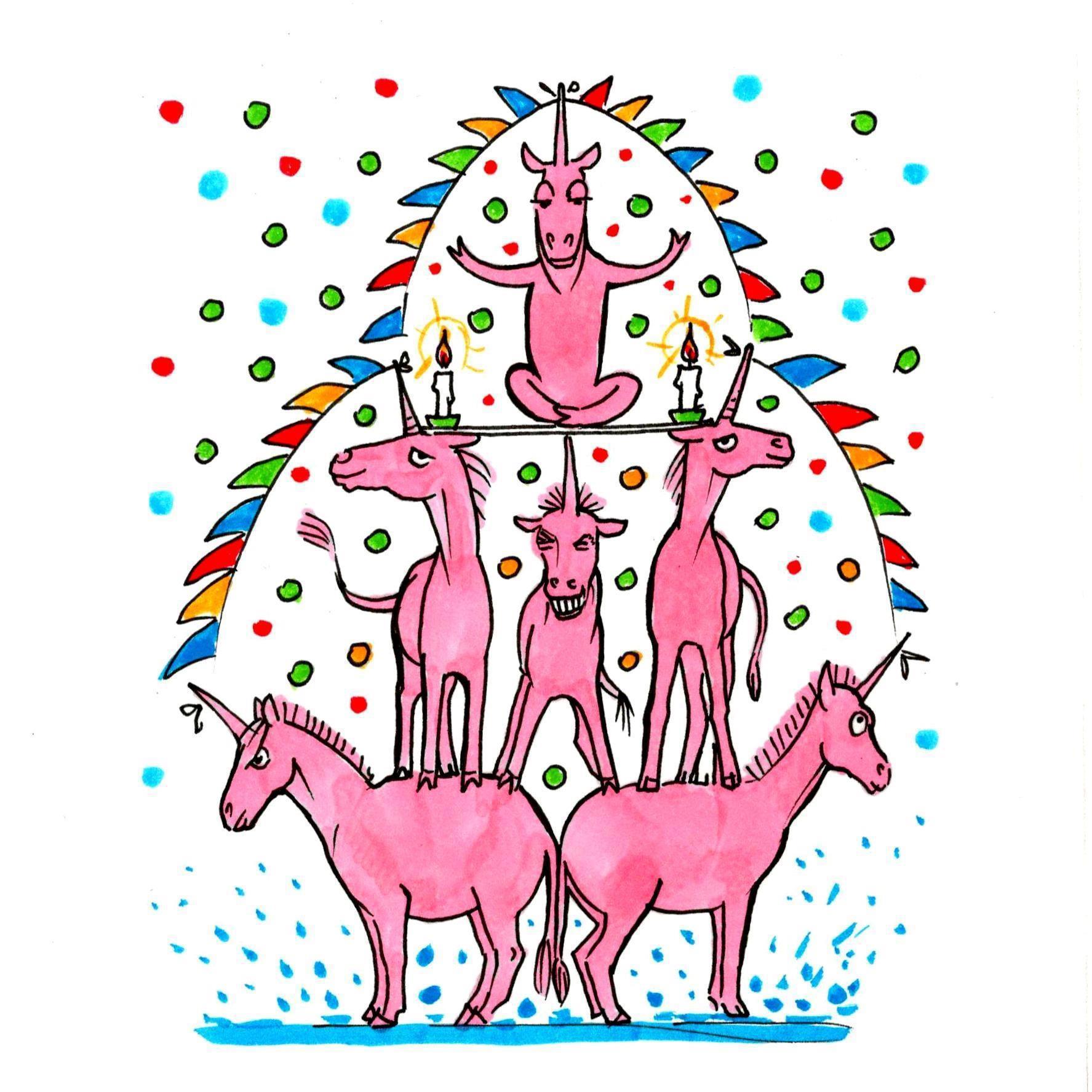 У меня уже есть одна рисованная ёлочка из розовых единорогов от Марики (кстати, гляньте – чудо как хороша, правда же?), теперь работаю на вторую – тоже из розовых единорогов, но другую.