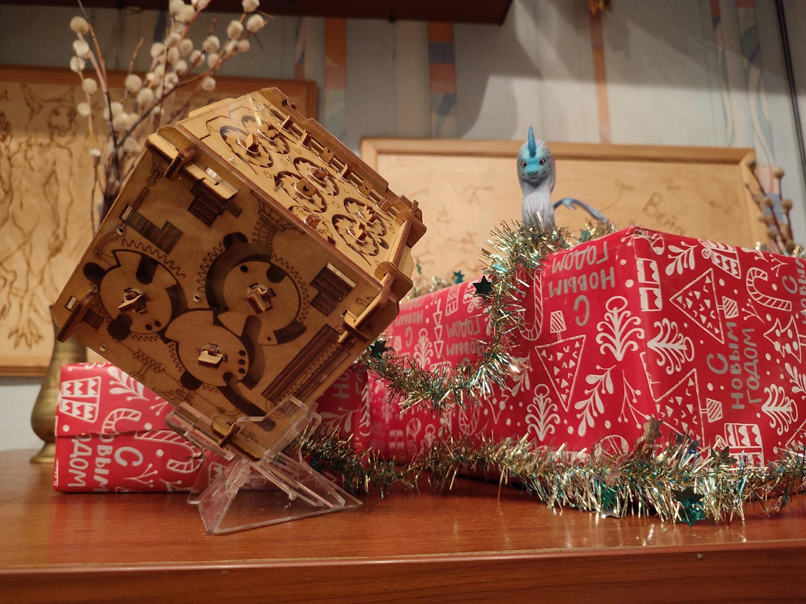 Эта коробочка - копия Перцептрона из нашего одноимённого рассказа. Названный в честь простейшей нейросети прибор исполняет желания, и реплика тоже с секретом внутри. Но чтобы добраться до спрятанного там приза, сначала придётся разгадать все головоломки шкатулки!