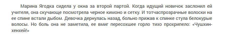 А ля «Дом, в котором» Петросян или «Ли» Дмитрия Гайто... Дом аж три раза читала, пытаясь понять, фигли это беспомощное описание детских мечтаний — бестселлер. А вот у Гайто был забавный, хотя и недодавленный до победного катарсиса фандоп с некими наблюдателями, но сам текст гораздо сильнее Петросяновского. Но лучше всего на эту тему пишет Татьяна Русуберг. У неё суховато, публицистически сжато, но зато технично.