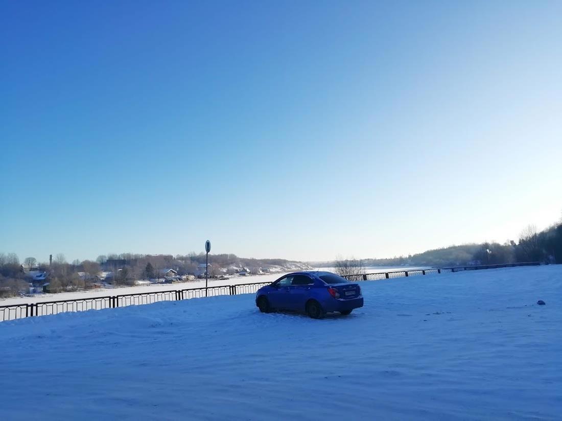 Январь и парковка у монастыря в Старой Ладоге с видом на ту самую Древнюю Русскую Реку: