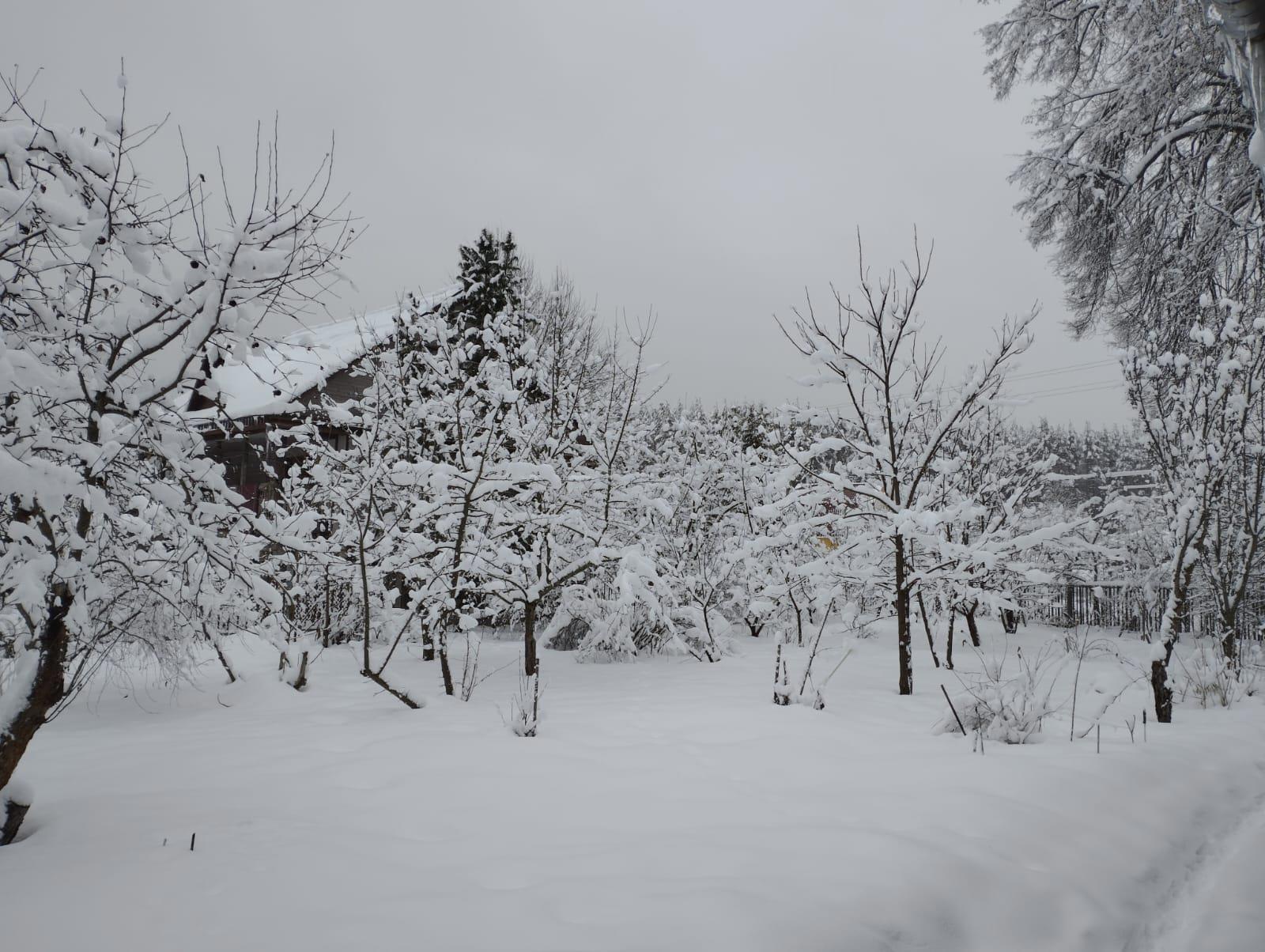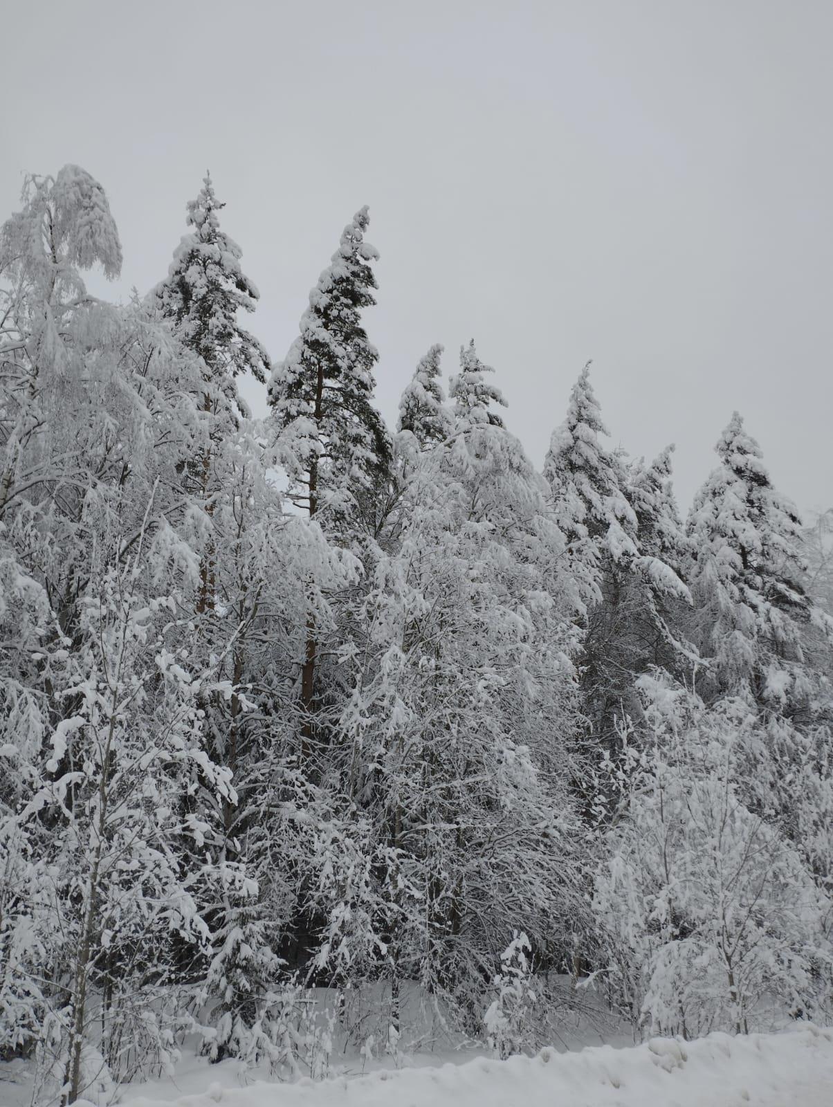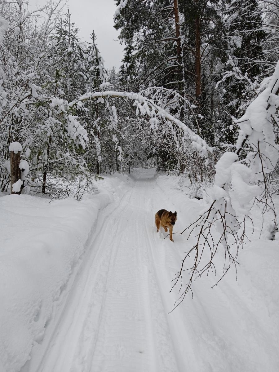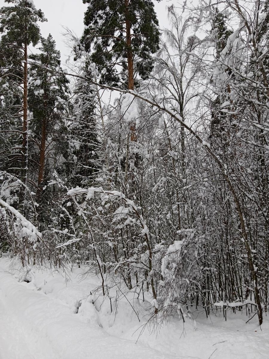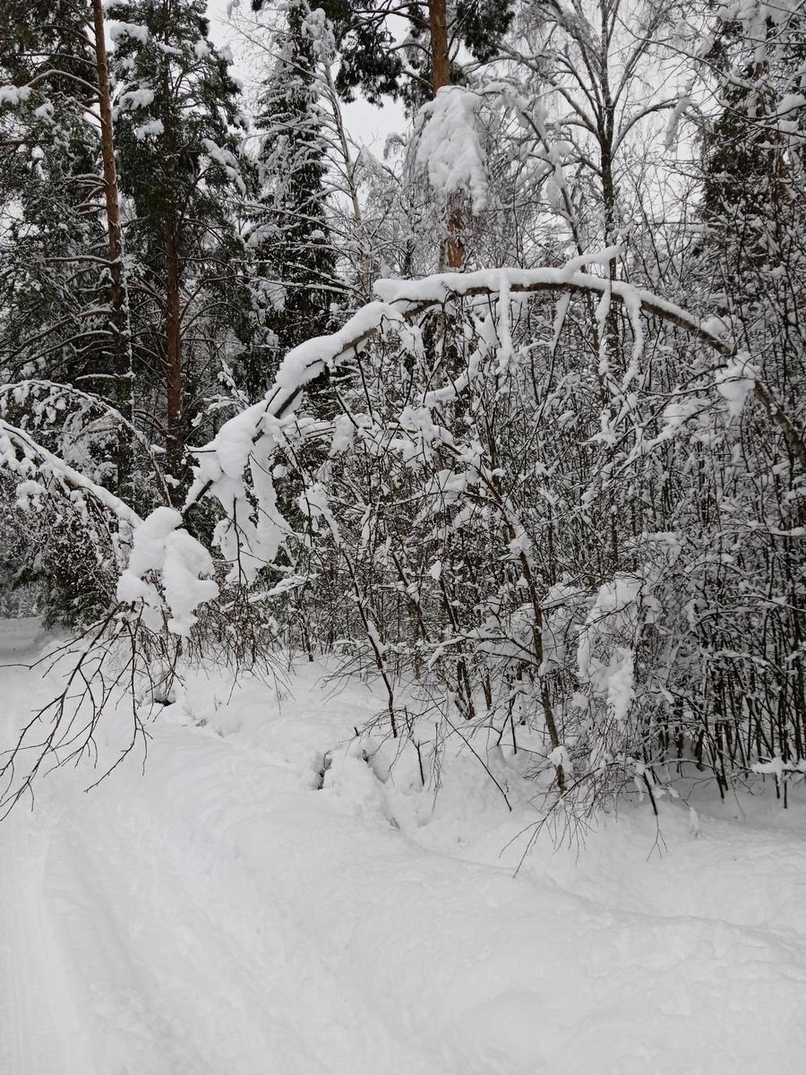 Снега жуть сколько, пока доехал - постоянно объезжал обломившиеся под его весом ветки.