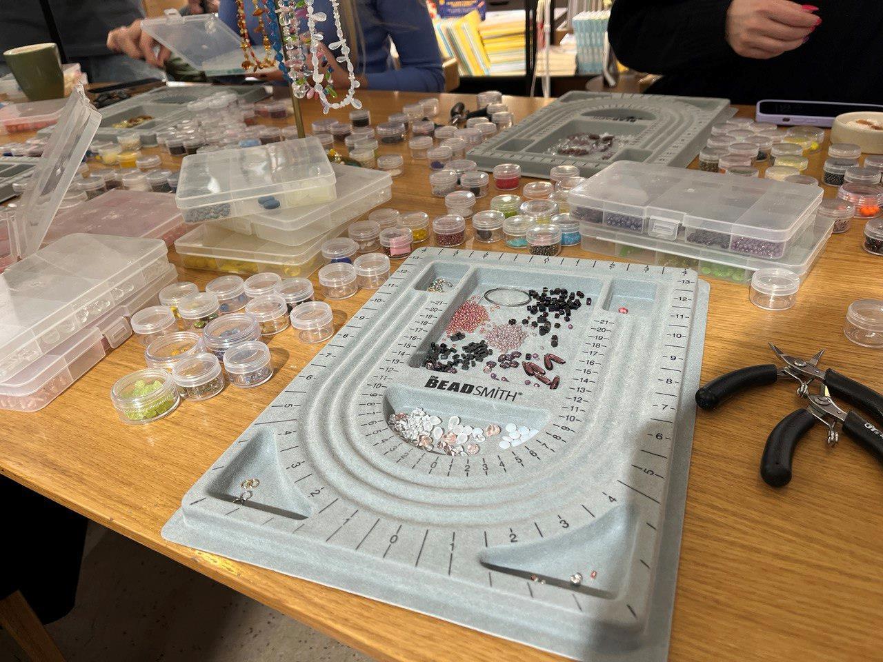 Я на мастер-классе по сборке чокера и браслета. Даже не знаю, зачем туда пошла, из любопытства, наверное.