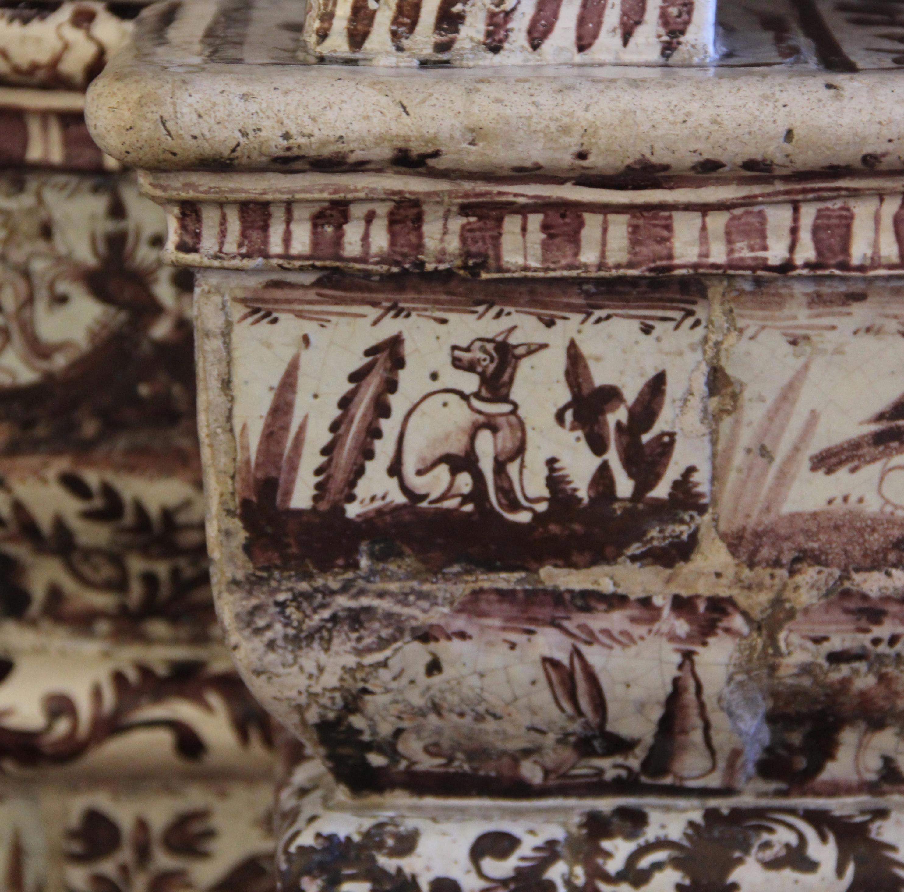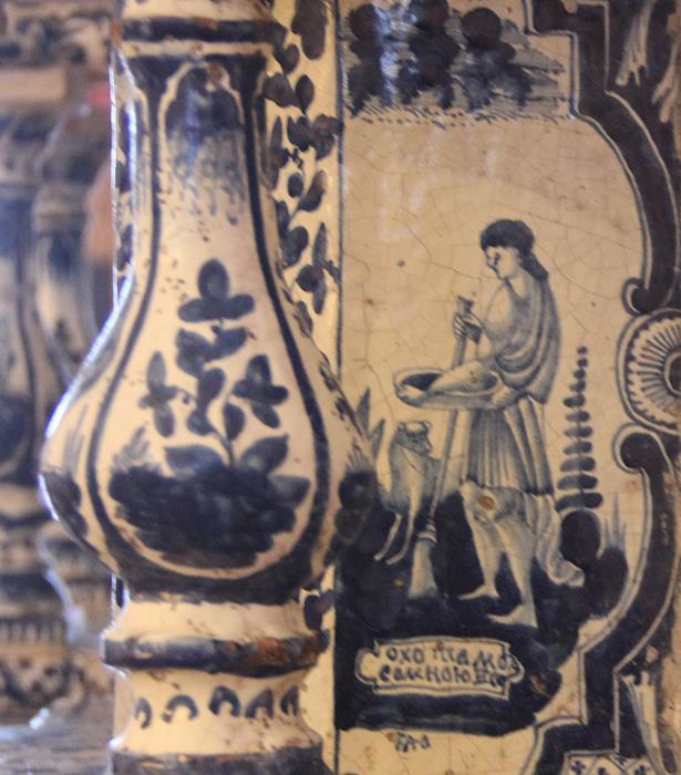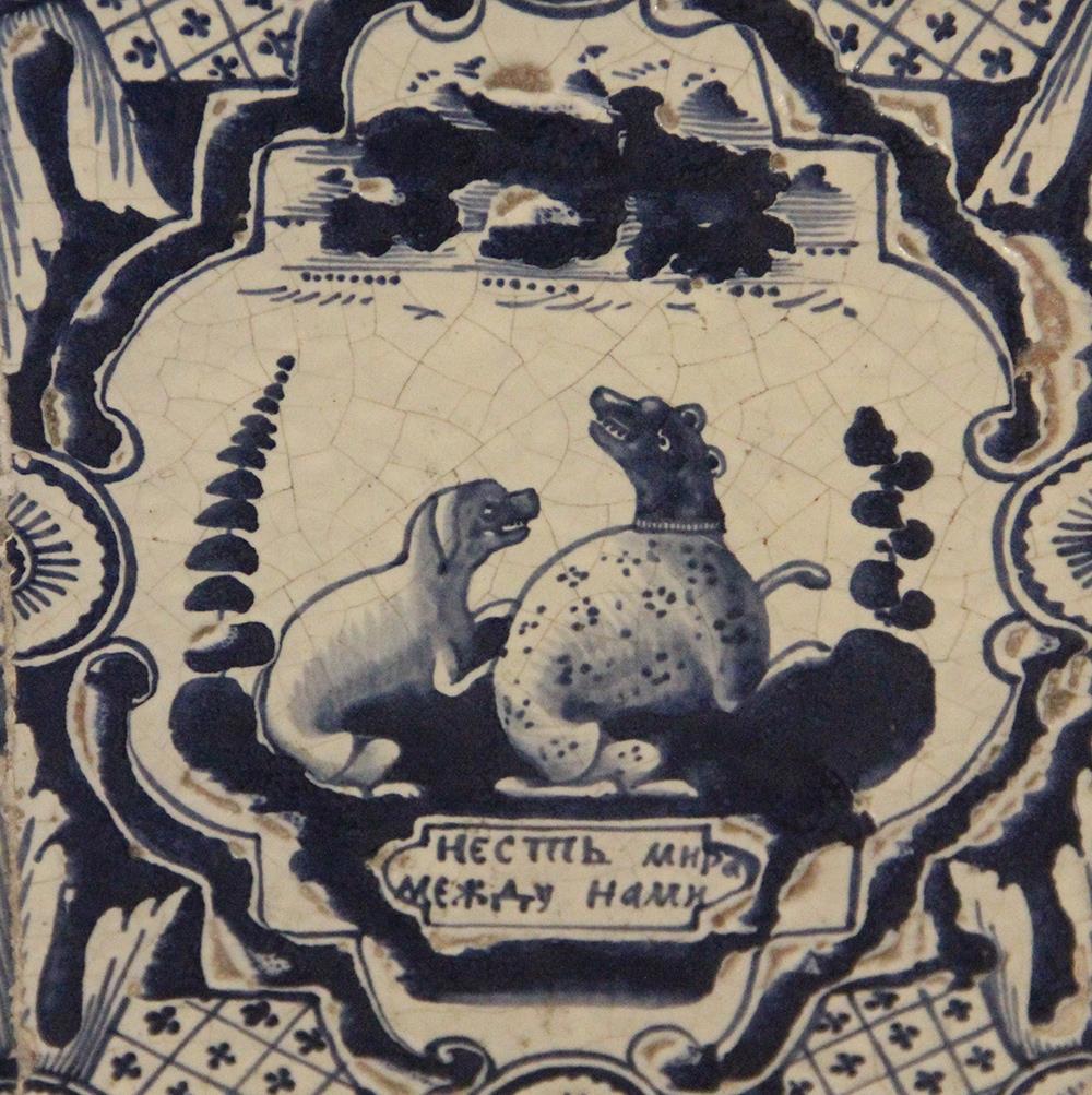 Собачки на изразцах. Вольно гуляют в высокой траве.