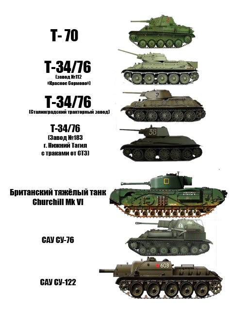 Со стороны войск Красной Армии в сражении, в основном, принимали средние танки 5-й гв. танковой армии — 597 танков и САУ, 130 тысяч человек. В основе бронетанкового кулака советских войск были средние танки т-34/76 заводов №112 "Красное Сормово", №183 (г. Нижний Тагил), которые немцы прозвали "Микки Маус" за характерные круглые люки на башне, Сталинградского тракторного, лёгкие танки Т-70, британские тяжёлые танки "Черчилль", поставлявшиеся по программе ленд-лиза, а также САУ СУ-122 и СУ-76.