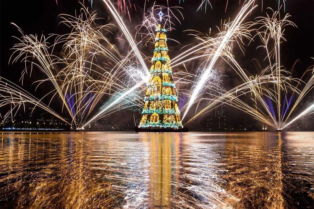 На озере Родриго-де-Фрейтас в Рио-де-Жанейро зажгла огни самая большая в мире плавучая ёлка. Искусственная 85-метровая красавица регулярно «вырастает» с 1996 года и тоже занесена в Книгу рекордов Гиннесса.
