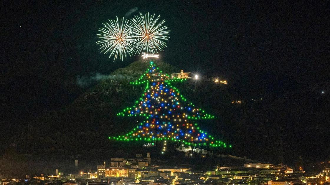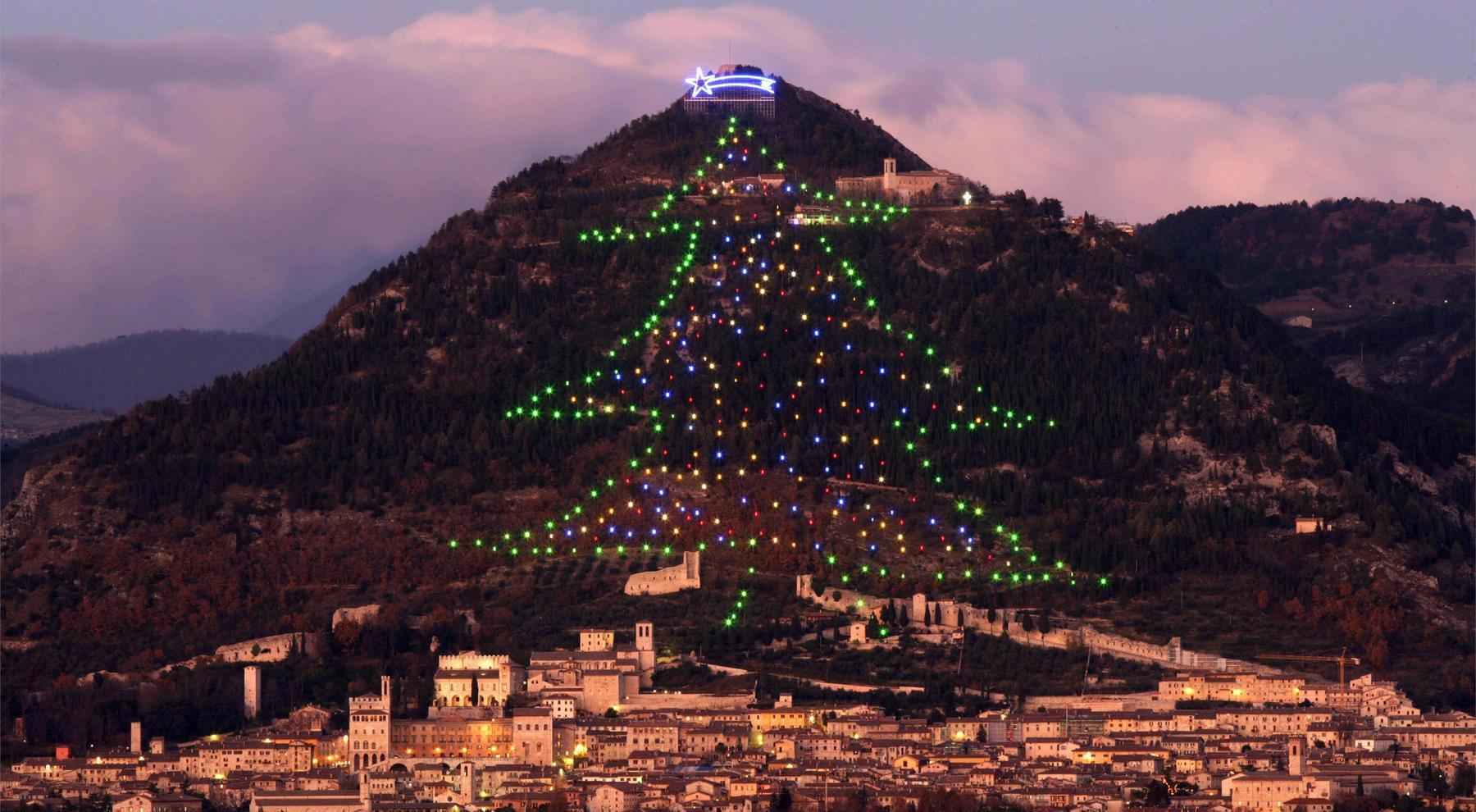На южном склоне горы Ингино, в Италии, зажгли самую большую ёлку.
