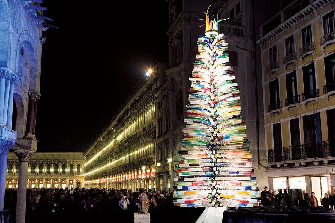 Стеклянная ёлка в Италии. Один из главных символов Венеции - муранское стекло, из которого и сделали ёлочку.