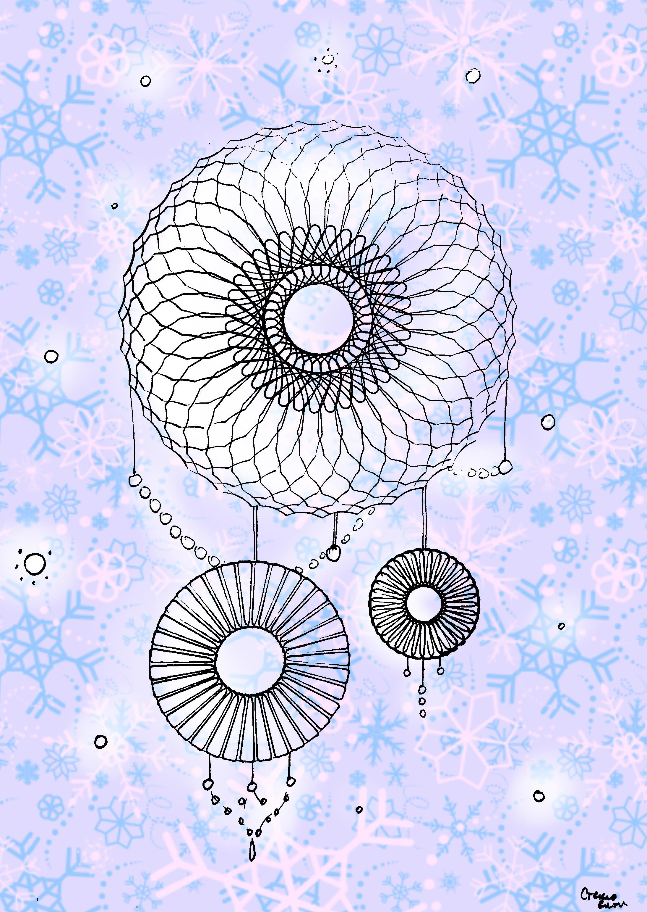 Штуки сделаны благодаря спирографу — фиговине, которая рисует узоры. Я о нём рассказывала годы назад, позже поясню подробнее.