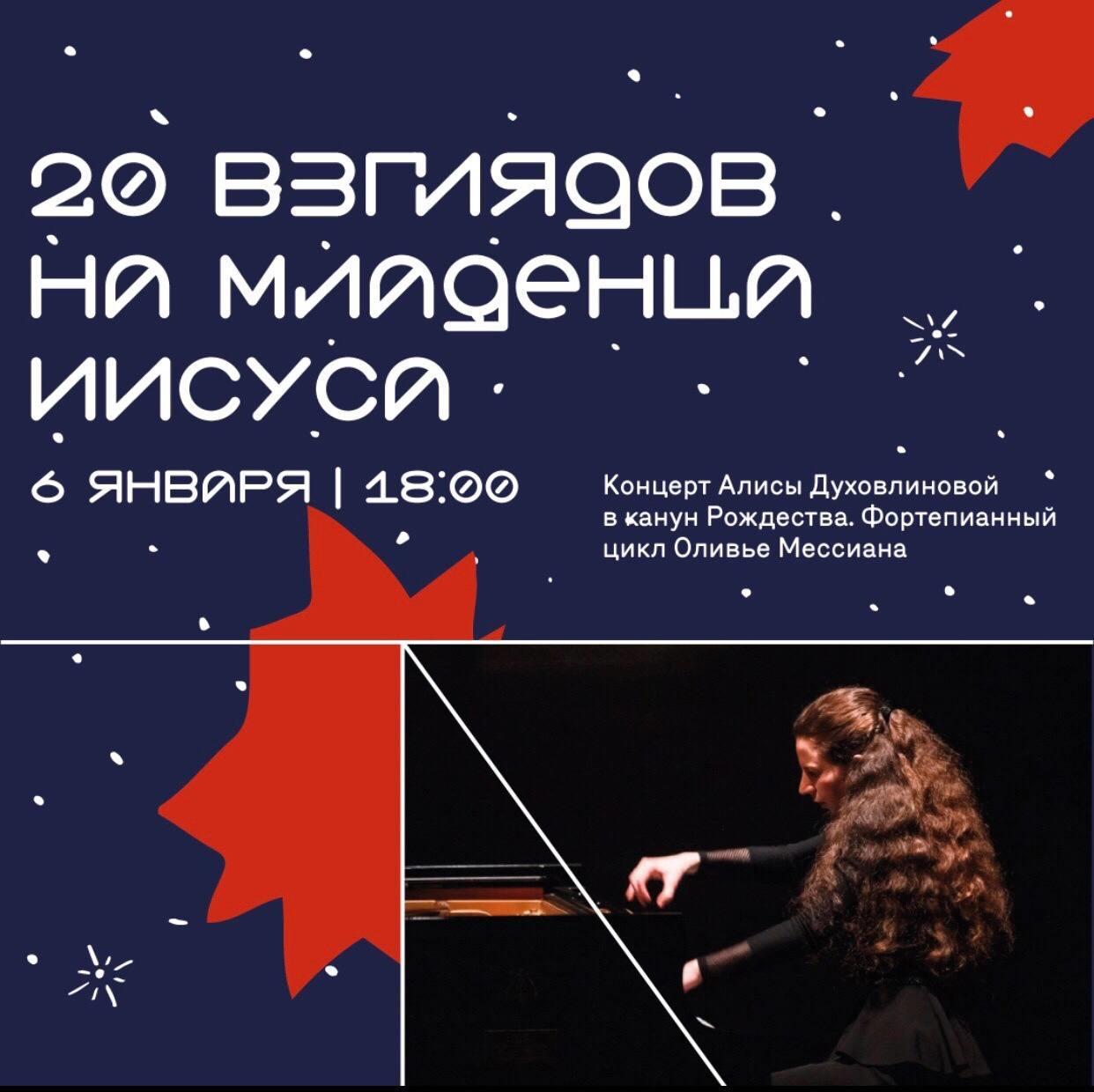 Грандиозный опус исполнит пианистка из Петербурга Алиса Духовлинова — одна и целиком наизусть. Это третье подобное исполнение в России — после А.Батагова и И. Соколова. Под сводами звуковых соборов, возведенных Оливье Мессианом, вы услышите пение птиц, колокольные звоны, удары экзотических инструментов, завывание ветра, хлопанье ангельских крыльев, молчание скал и звон галактических спиралей. Эту музыку можно не только слышать, но и видеть, осязать. Прослушивание этого произведения сродни присутствию на рождественской службе.