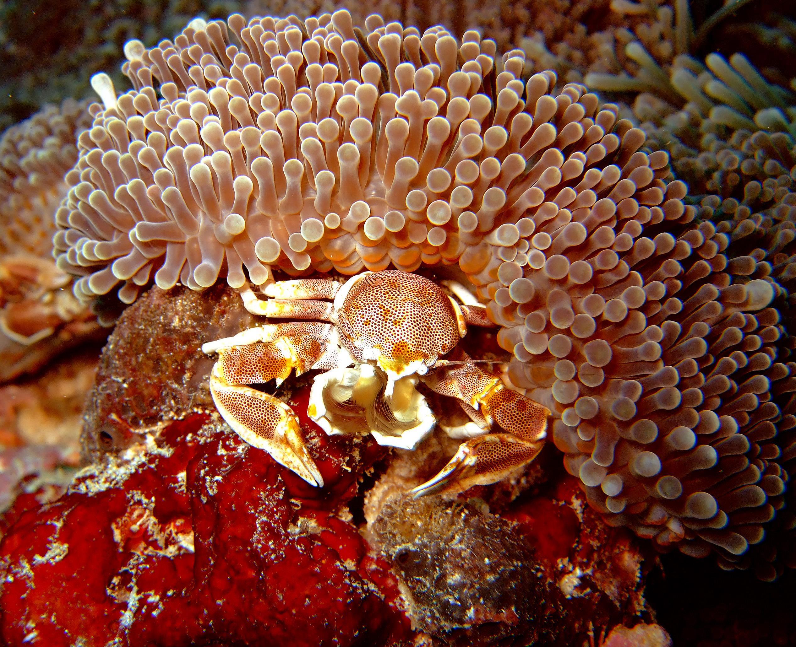 Краб в анемонах. Мальдивы