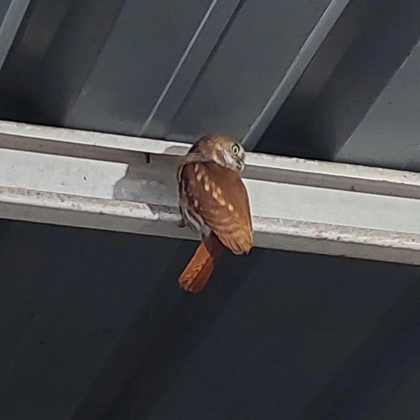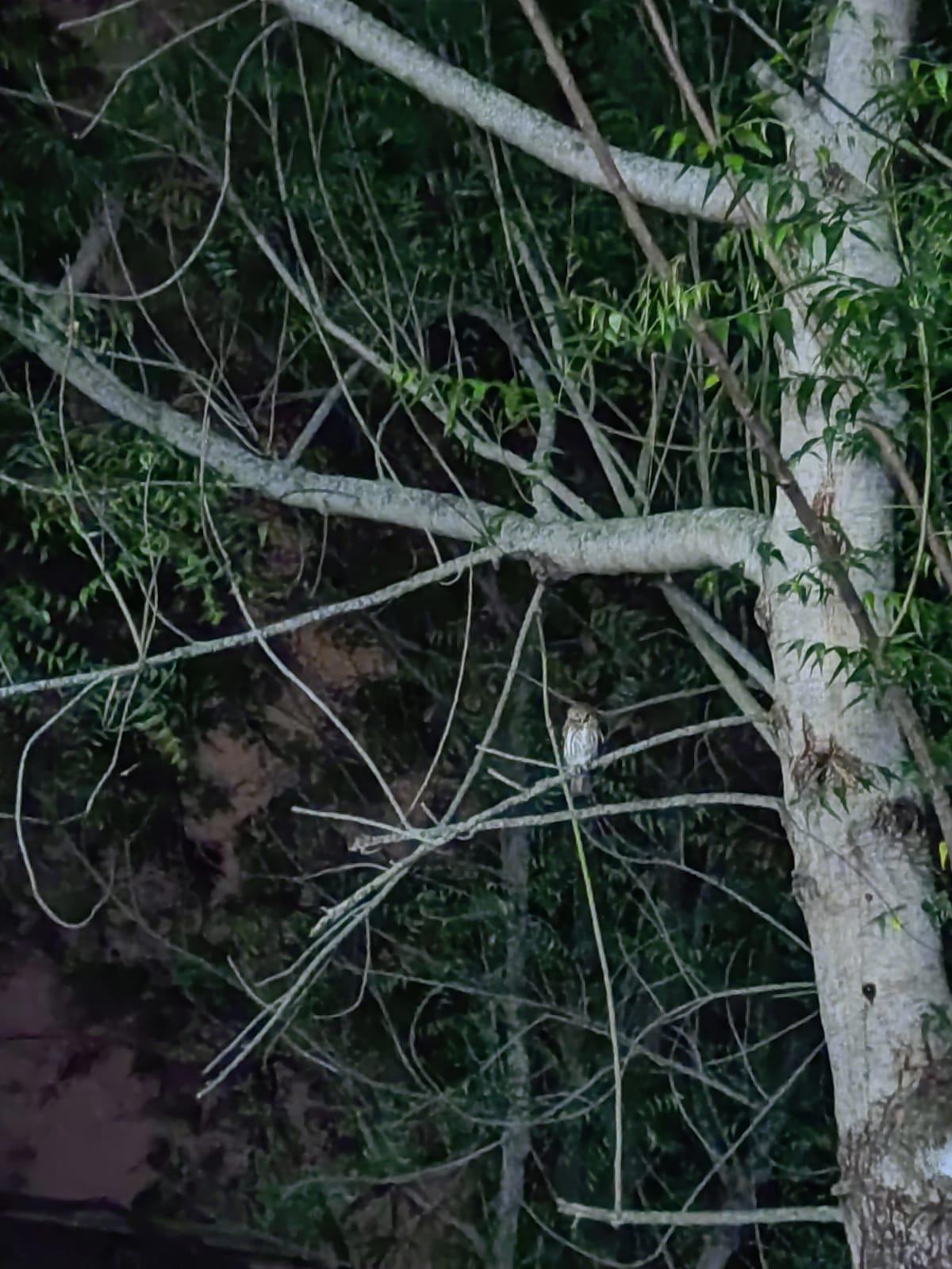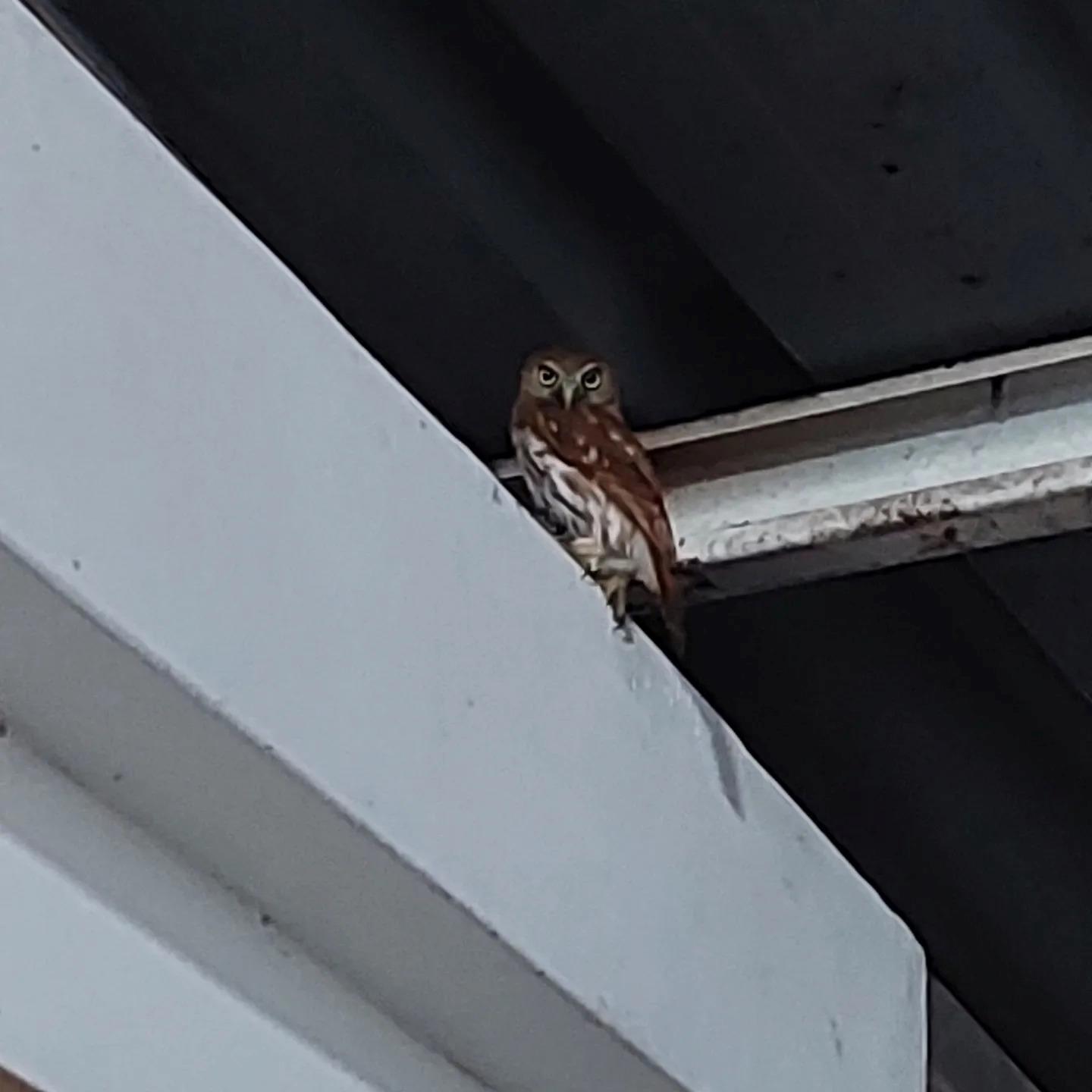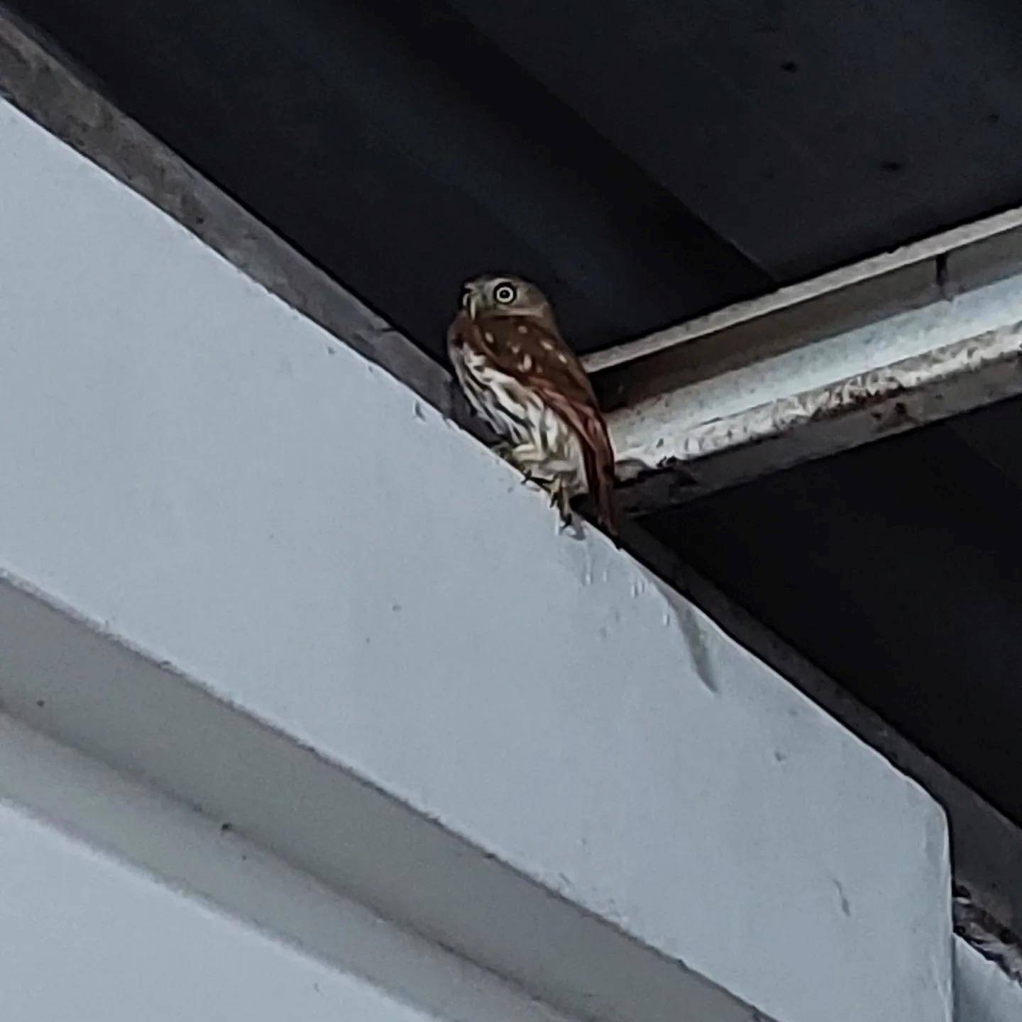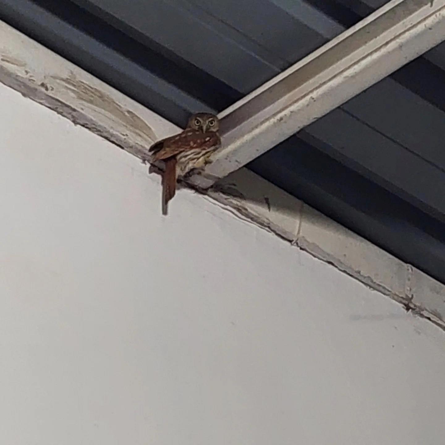 В общем сидела за компом, никого не трогала. Вдруг в окошко влетает нечто маленькое: см 15 в высоту и в ладонях уместилась бы легко. Поначалу заподозрила летучую мышку, но тут неопознанный поначалу ночной гость нашел, куда приземлиться, и глянул круглыми желтыми глазищами.