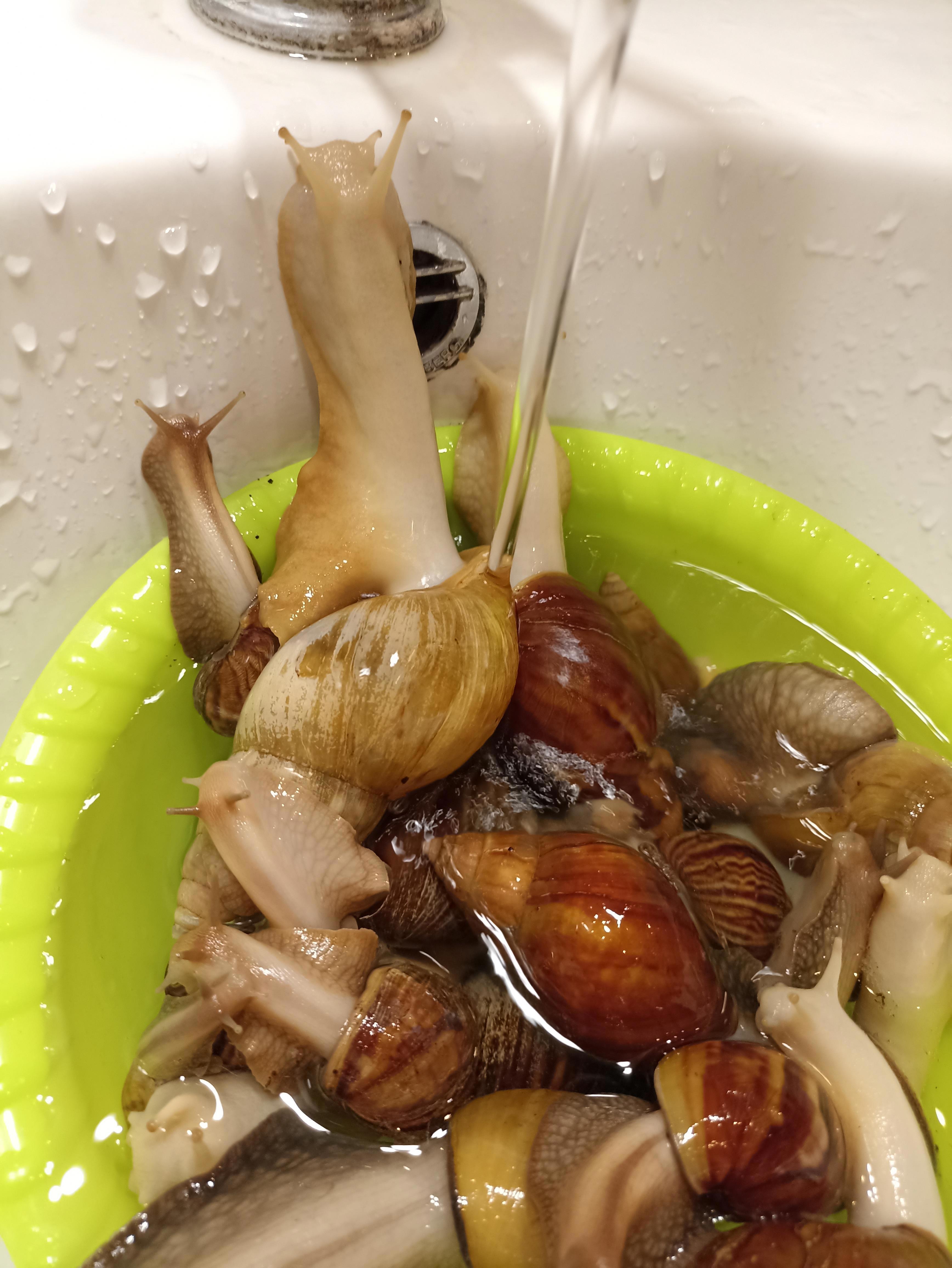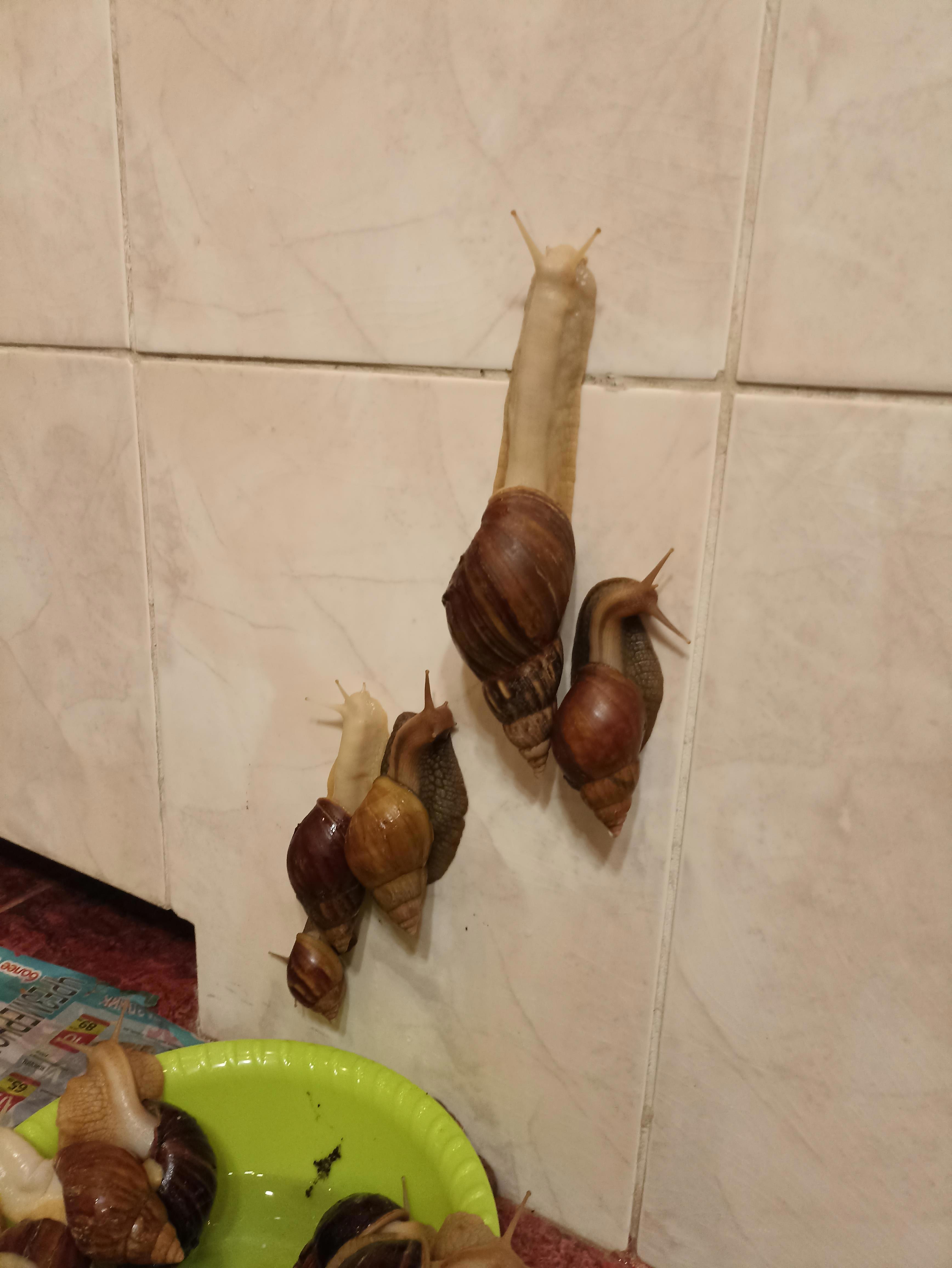 Замечу, что самая крупная отрастила себе раковину длиной почти с мою ладонь. И пузо соответствующее. И я часто шучу, что у улиток питание здоровее, чем моё)))