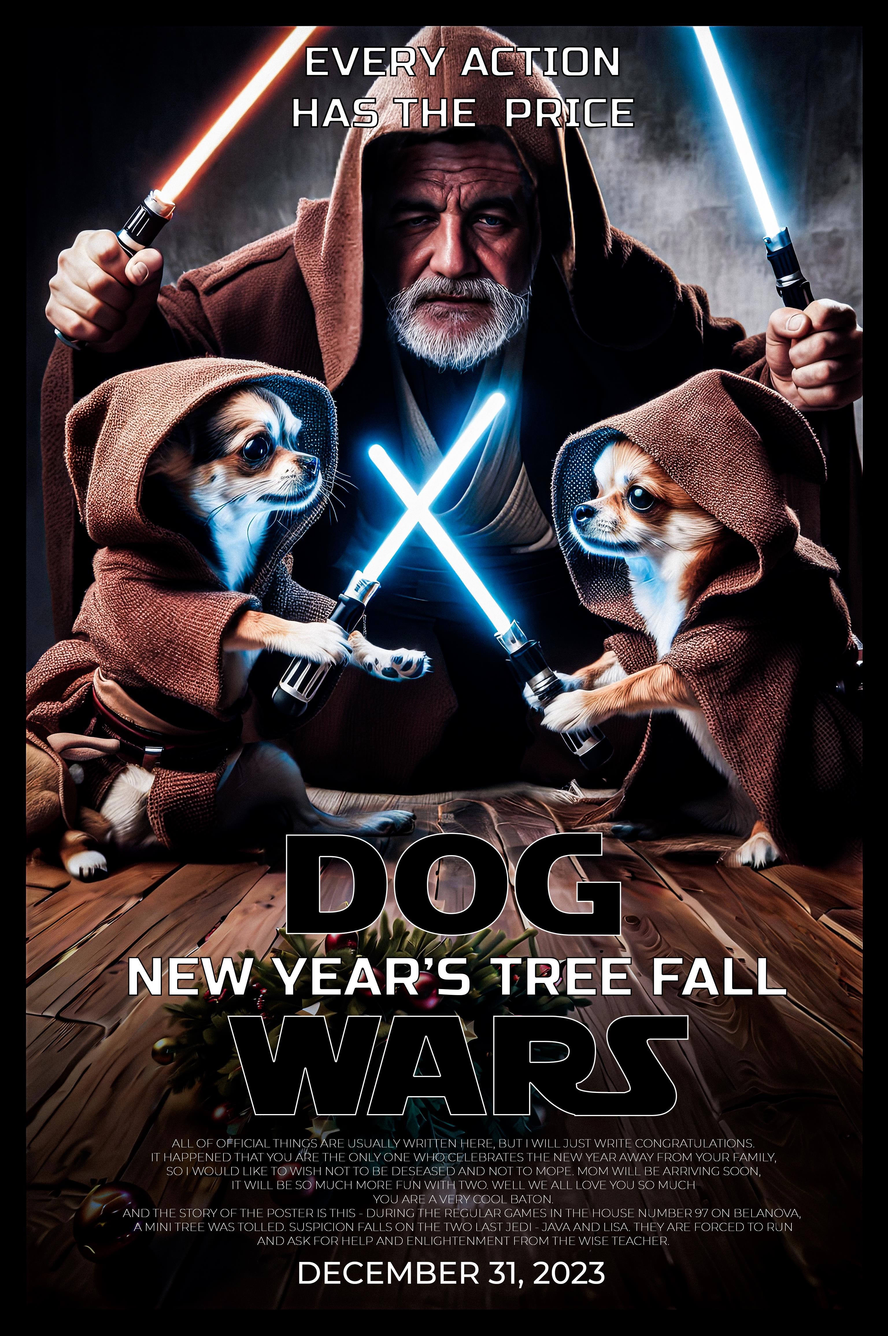 Это Джава и Лиза. Одна (Лиза) - это собака моих родителей, вторая (Джава) - собака брата. В своих играх они могут нашкодить, что тут, на этом фото, и запечатлено. А я недавно читал большой пост про звёздные войны, и картинка как-то сама в голове сошлась, и родился вот такой постер к несуществующему фильму: