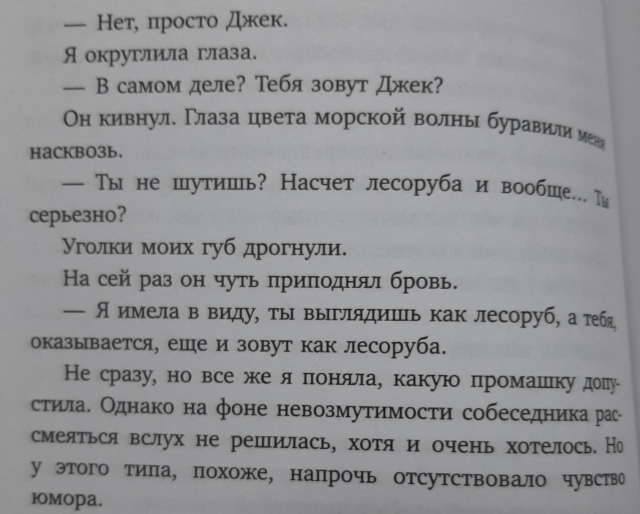 В целом, вышла не самая интересная, но и не очень бесячая книга. Могу рекомендовать её как пример того, то ну можно же писать о романтических отношениях без абьюза и манипуляций. Я бы поставила книге четвёрку, если не последние сто страниц. Если вы хотите расслабиться вечерком и почитать что-нибудь ненапряжное, можете ознакомиться. Впереди ещё две части в серии, которые будут рассказывать о друзьях Джека, Уилле и Эде. Но что-то мне подсказывает, что они ни чем не будут отличаться от первой. Ну что ж, посмотрим, когда они выйдут на русском языке.