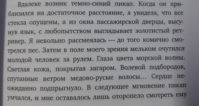 Казалось бы, у голубков дальше всё хорошо. Джек знакомит Марли со своей семьёй. Я уже было обрадовалась, что в кои-то веке книга, где герои не закатывают истерики, а решают проблемы словами. Но именно в этот момент писательница решает, что мало в книге было страданий, и под конец пихает драму уровня латиноамериканских теленовелл - она подслушивает разговор Джека с сестрой, где та троллила его за многочисленные одноразовые связи с туристками.