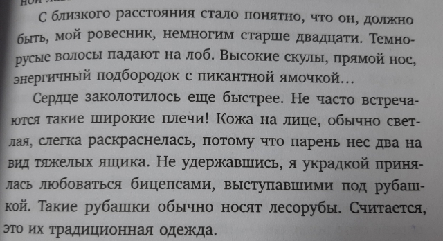 Авторский слог довольно банальный и простой. Бесконечные описания глаз и волос героев чуть ли ни в каждой главе. Как будто кроме волос и глаз у людей больше ничего нет... А как же нос?.. Уши в конце концов?.. Город описан подробно, но вот описаний природы очень скучные. Не хватило мне погружения и атмосферы канадского леса на острове морского залива. Большую часть глав занимает рефлексия и чувства героев, тоже не слишком интересно описанные.