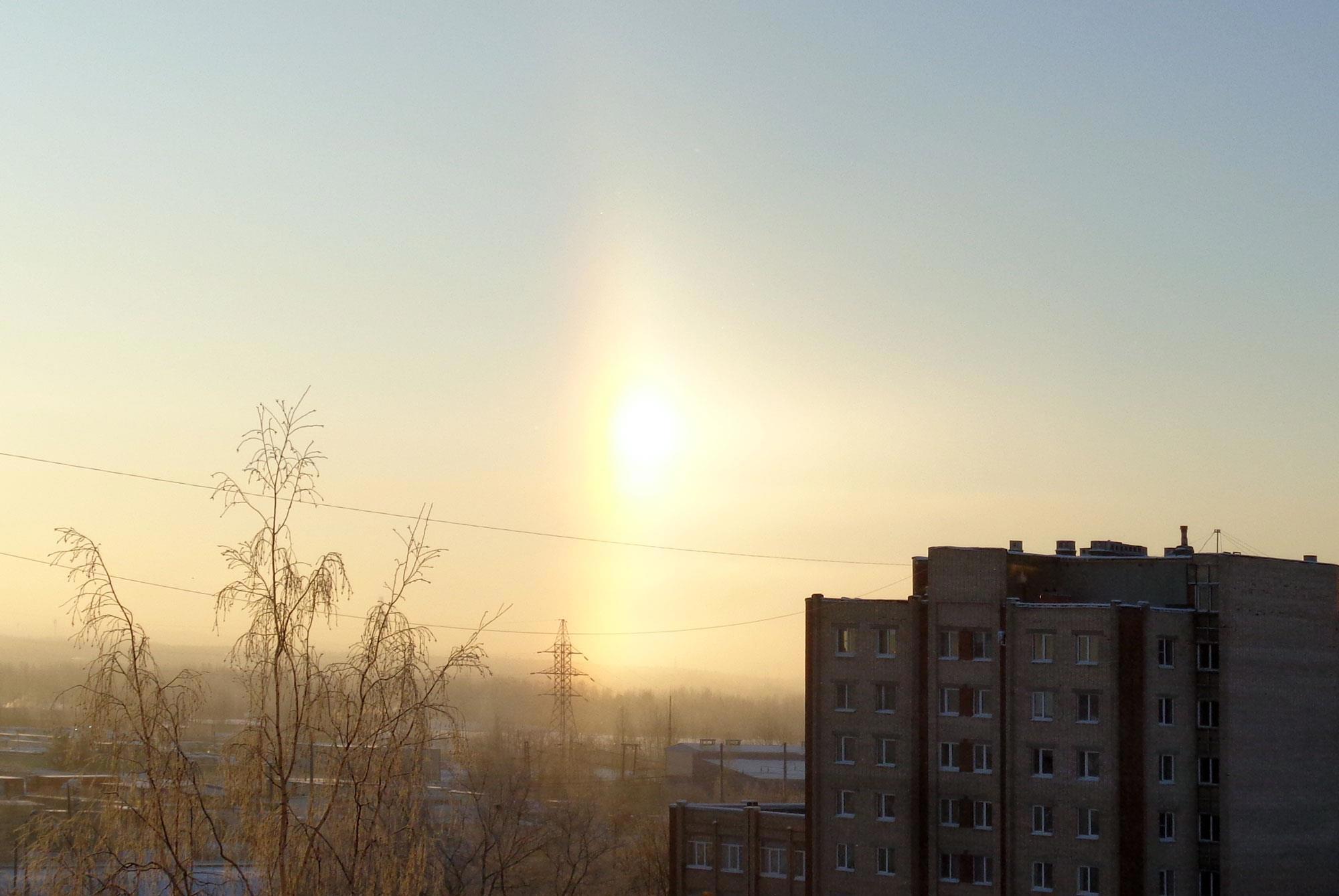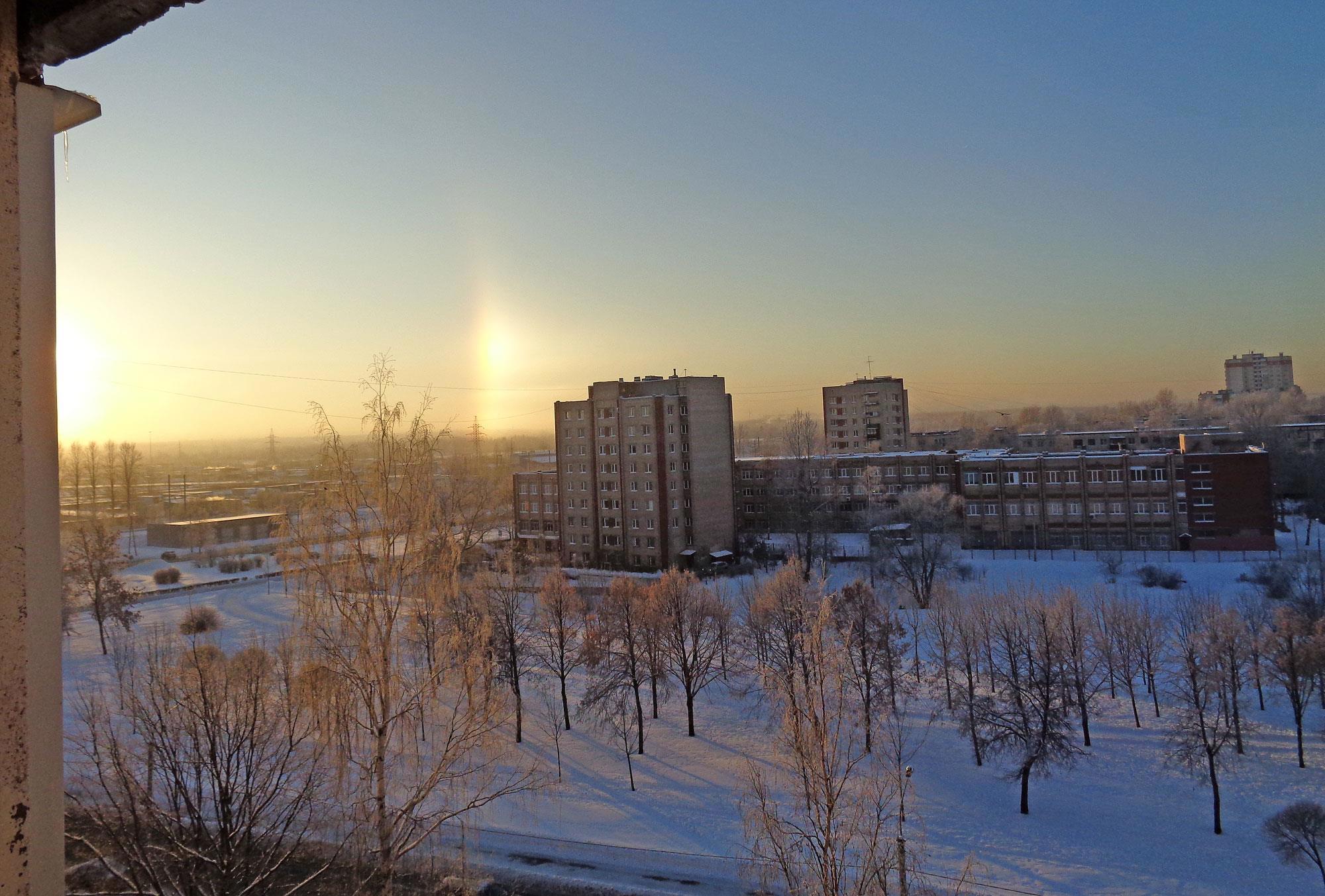 Автор: Маргарита ГуминенкоЗима, холодно. И зимняя радуга. Нам сказали, что это гало, но когда я стала уточнять по справочнику, прочитала, что гало - и есть зимняя радуга. Она образуется не от воды, а от взвеси частичек снега в воздухе.