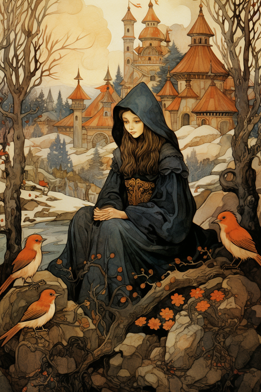 Героиня попадает в сказку. Прекрасную и любимую многими "Белоснежку и семь гномов". Ну знаете, там олени, птички поют, и всё заканчивается хорошо. Злая королева погибает, Белоснежка выходит замуж... Стоп-стоп, в смысле погибает?! Как это, погибает?