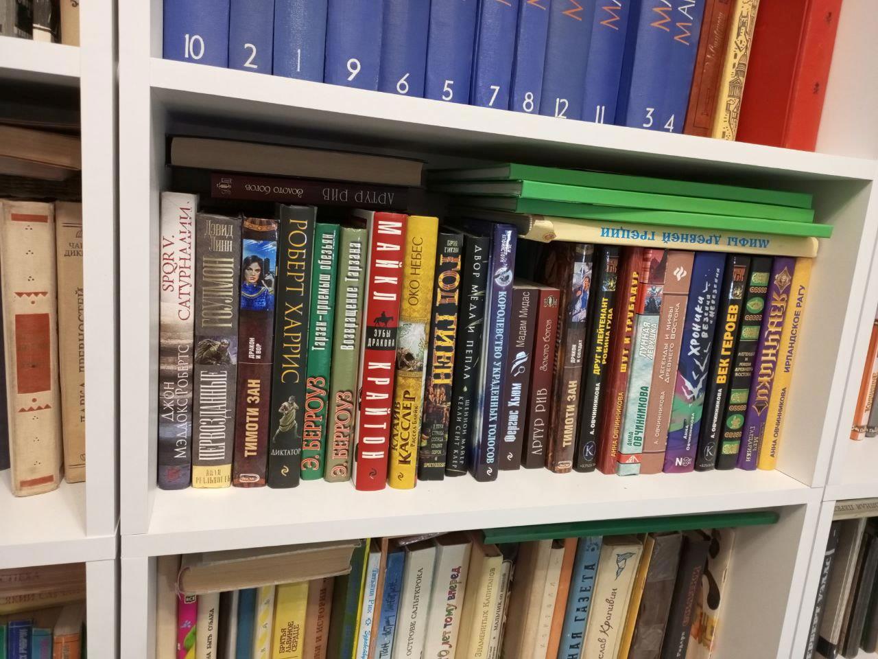 Одна полка целиком ушла под мои переводы и авторские книги, слева - переводы, справа - авторские.
