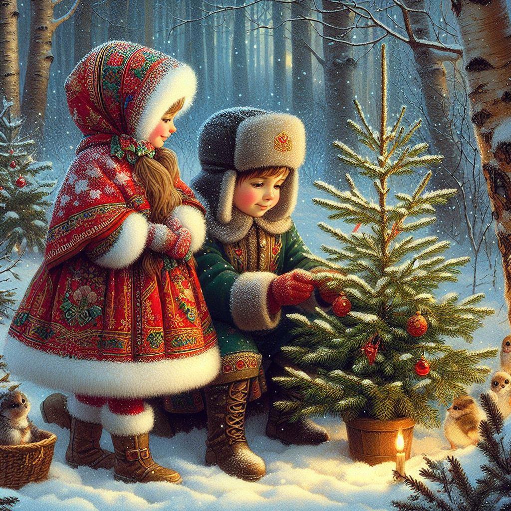 Автор: Кристиан БэдНейронка прекрасна)) Ёлочка в лесу растёт сразу в горшке, а к детям сбегаются кото-совята) Ну и шапка у русского пацана может быть только ушанка — как я ни старался, другой не выпало))