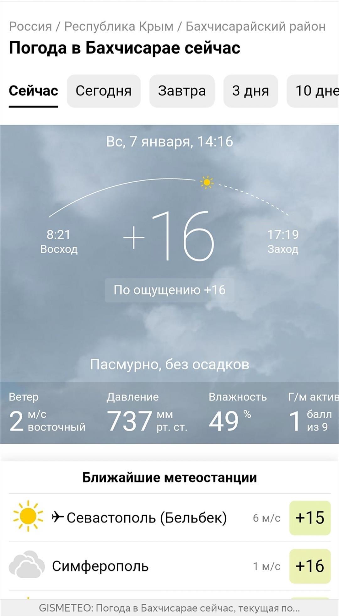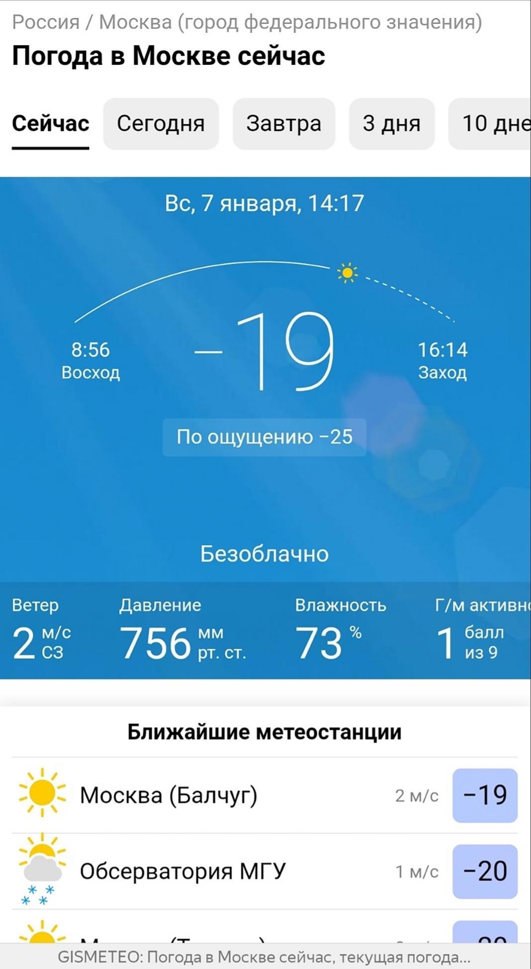 Пример - сайт Гисметео 7 января 2024 года, воскресенье, в 14:20