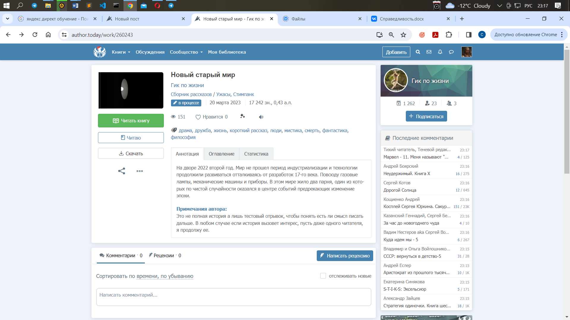 В жанрах заявлен стимпанк. Любопытно! Иду читать. Стимпанк люблю, хотя читаю не то чтобы часто.